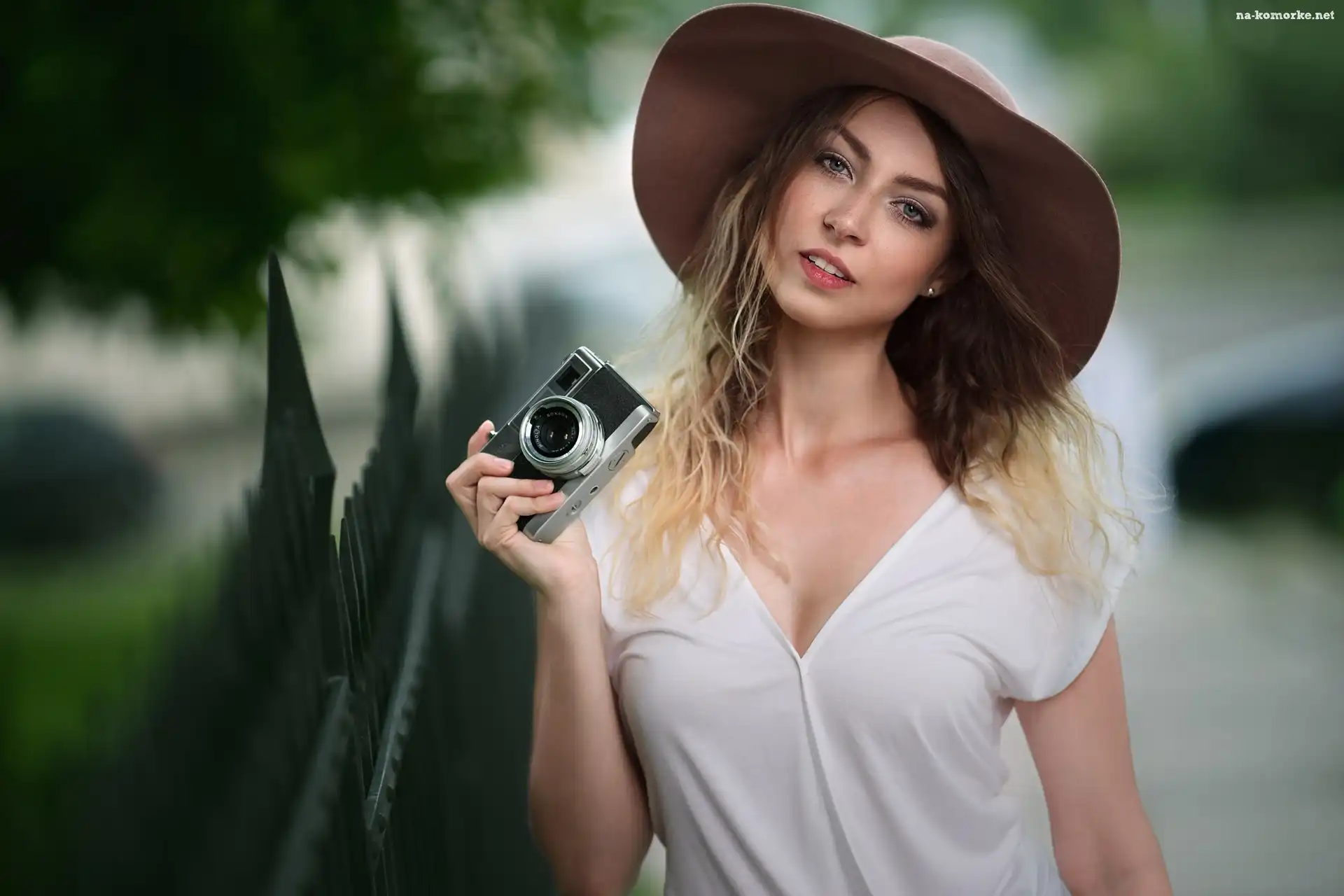 Kobieta, Aparat, Kapelusz, Twarz na Komórkę