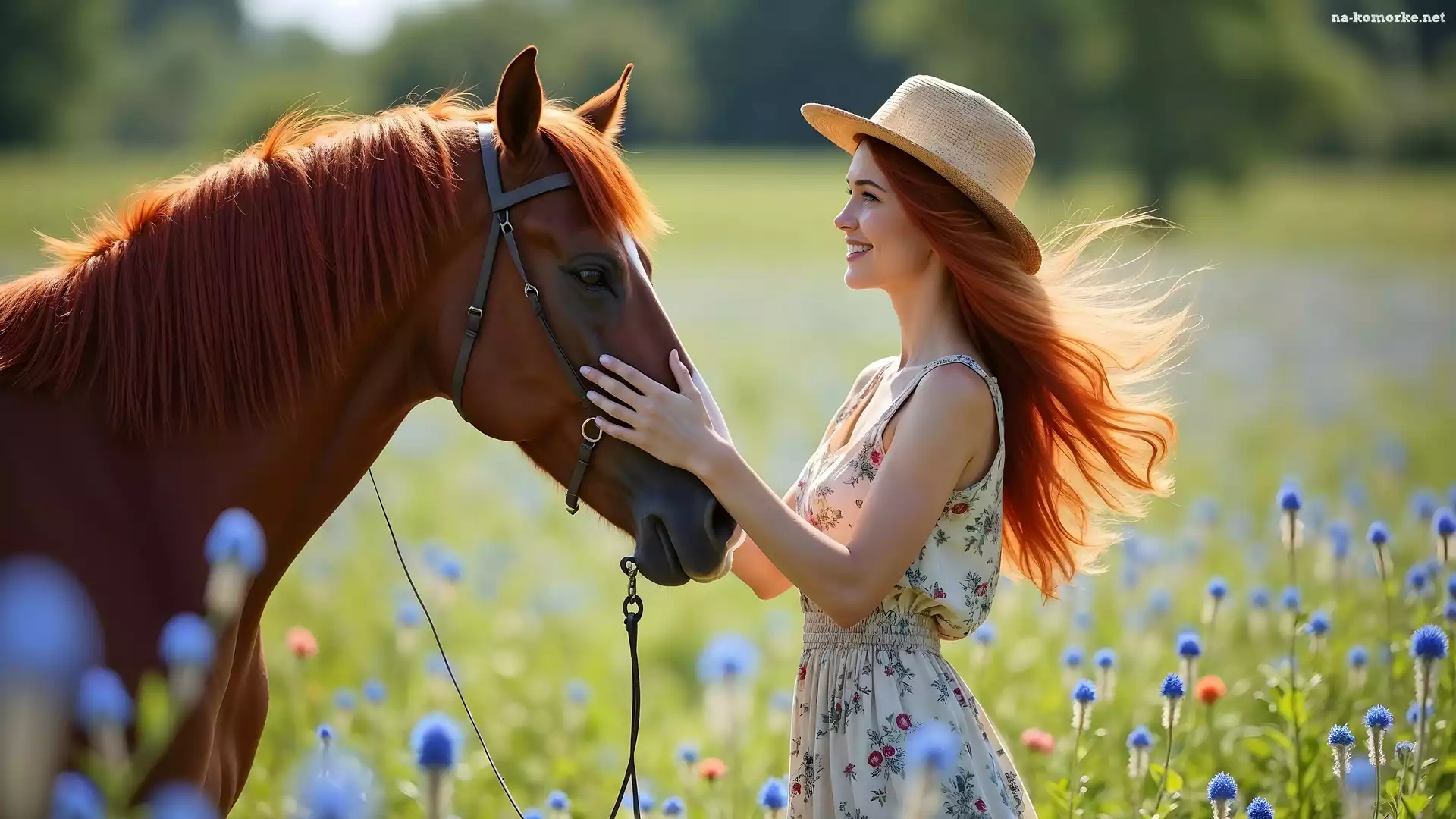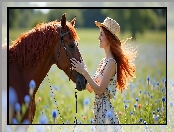 Kapelusz, Koń, Rudowłosa, Kobieta na Komórkę