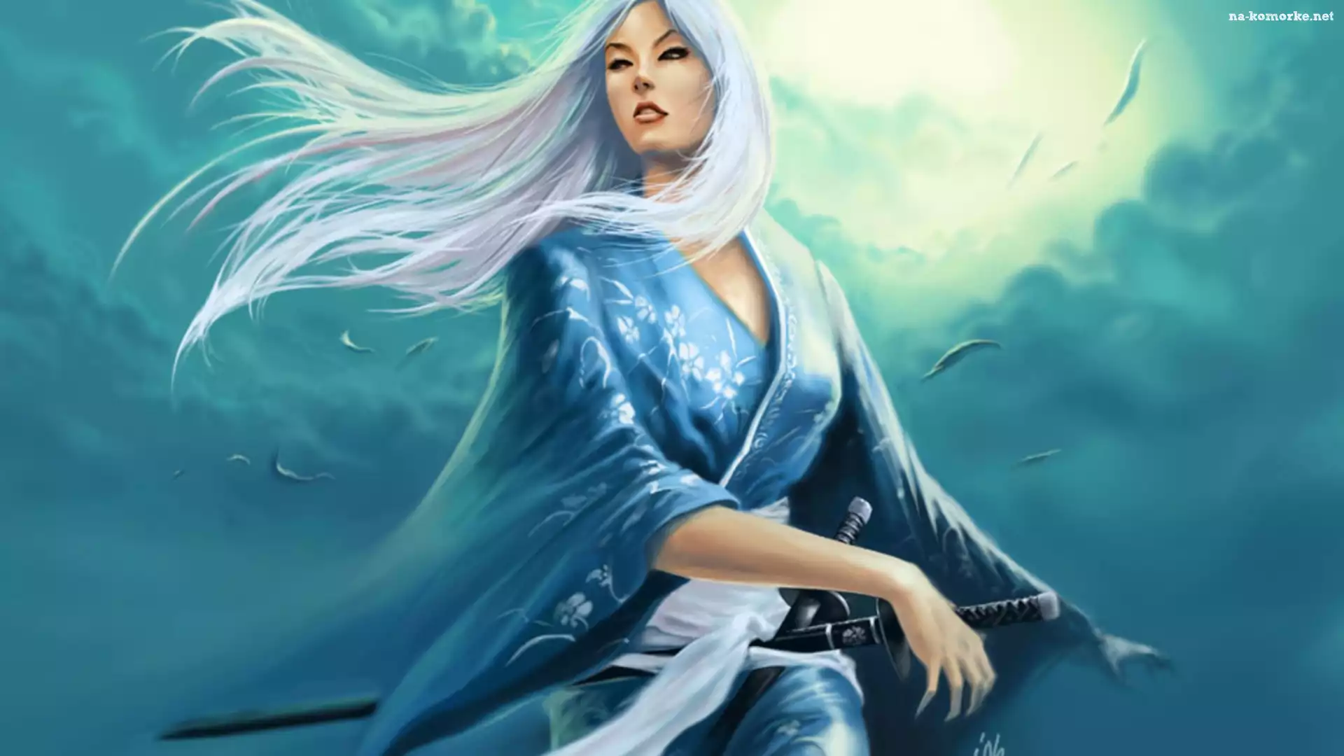 Kobieta, Grafika, Kimono, Miecze na Komórkę