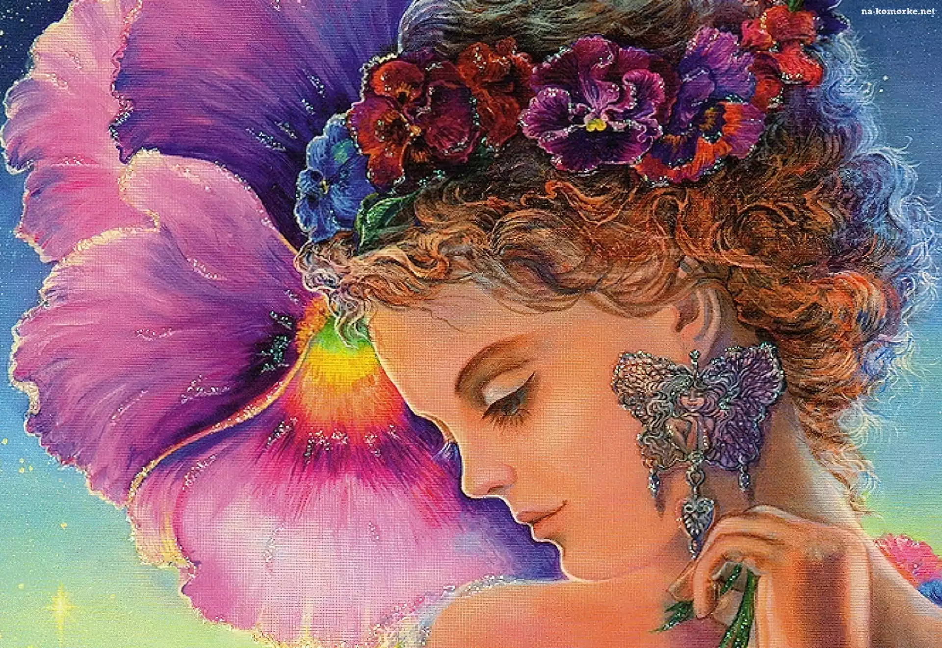 Kobieta, Josephine Wall, Kolczyk, Kwiaty na Komórkę