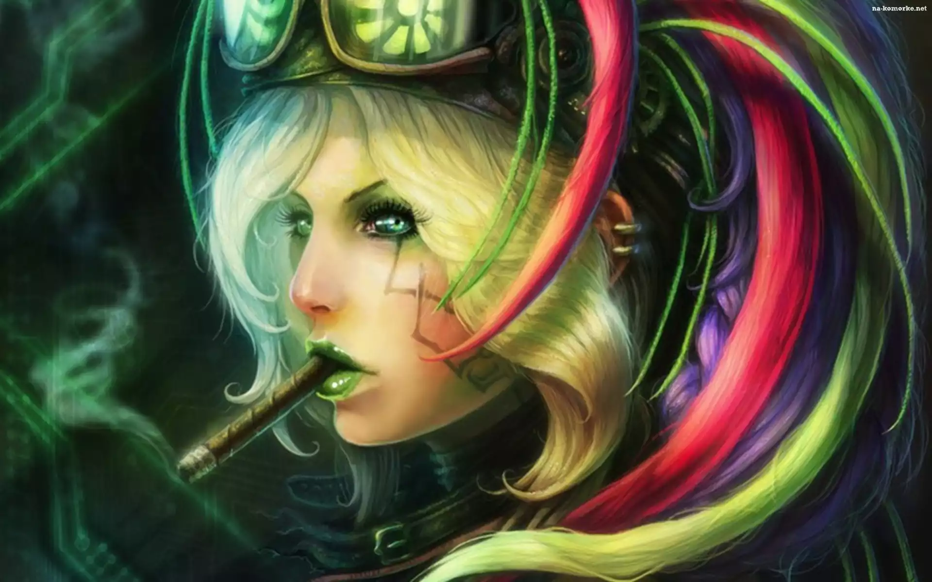 Kobieta, Cygaro, Kolorowe, Włosy na Komórkę