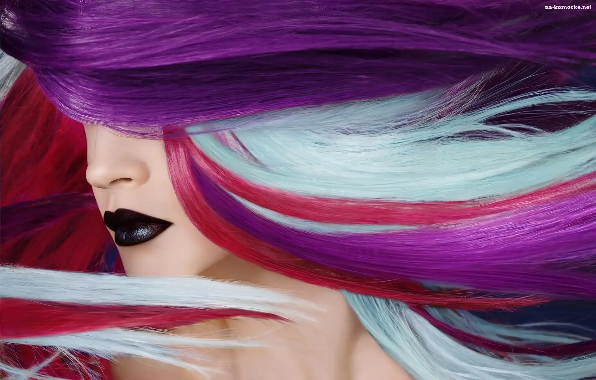Kobieta, Makijaż, Kolorowe, Włosy na Komórkę