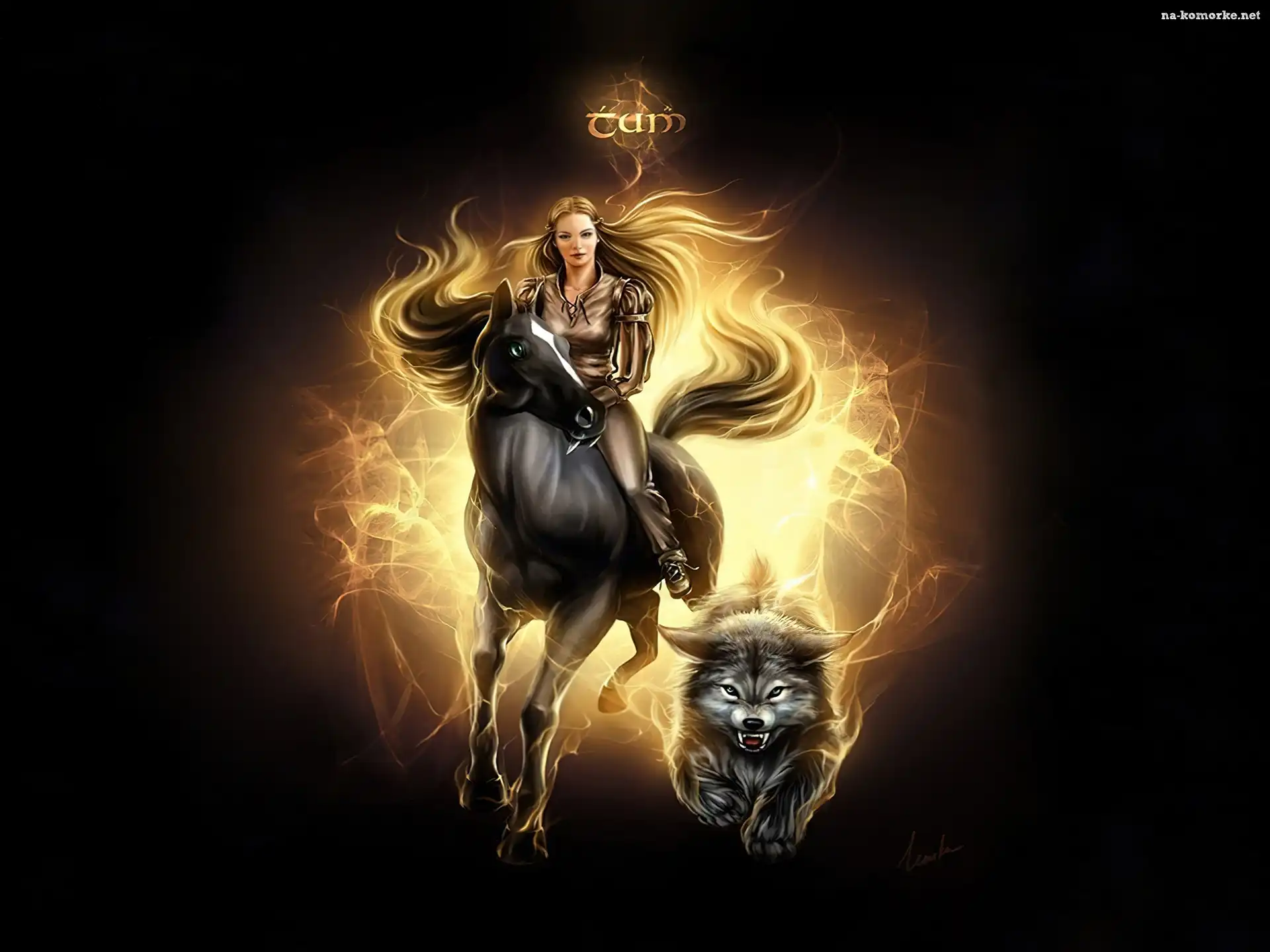 Kobieta, Ogień, Koń, Pies na Komórkę