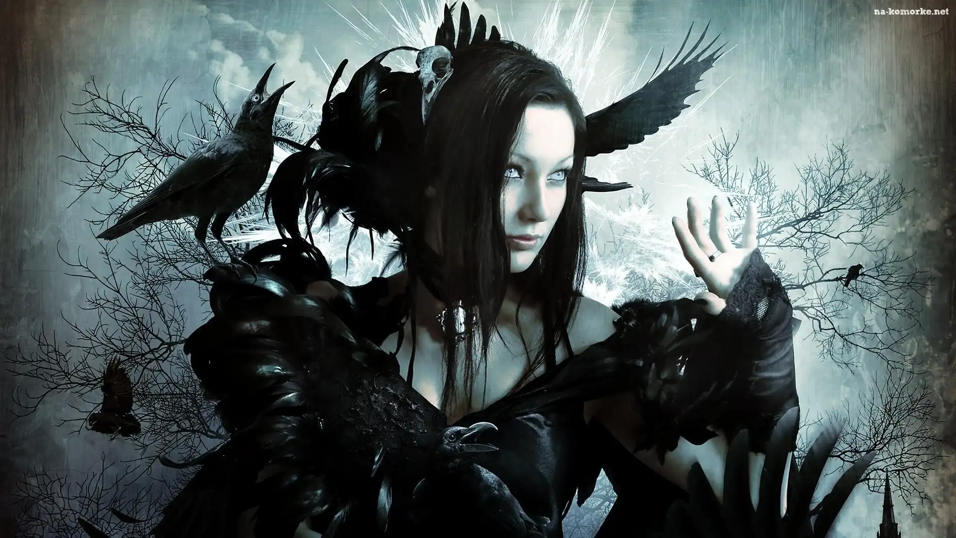 Kobieta, Drzewa, Kruki, Czerń na Komórkę
