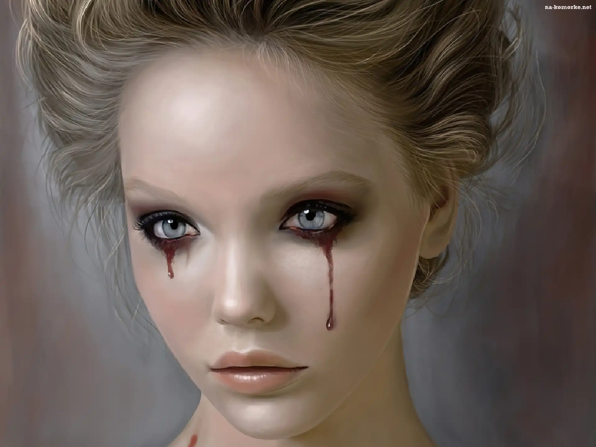 Kobieta, Makijaż, Krwawe, Łzy na Komórkę