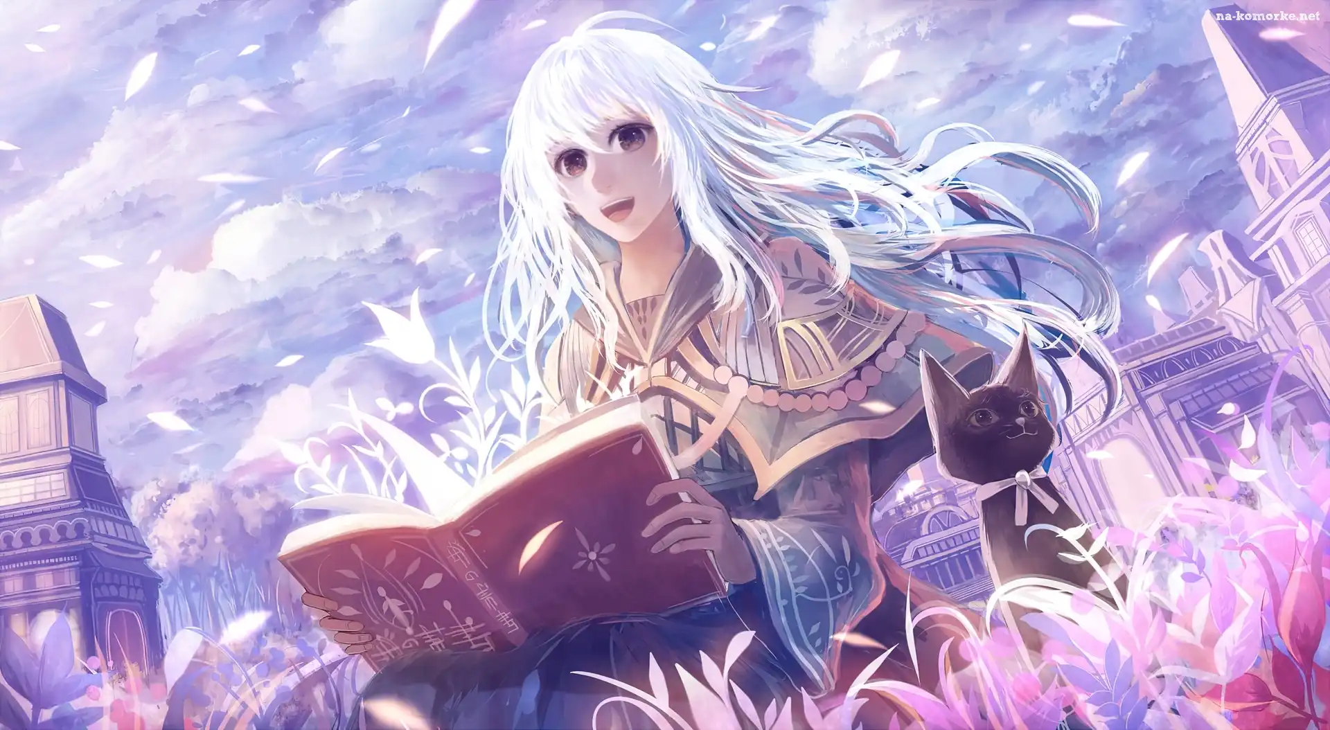Kobieta, Wieże, Książka, Kot na Komórkę