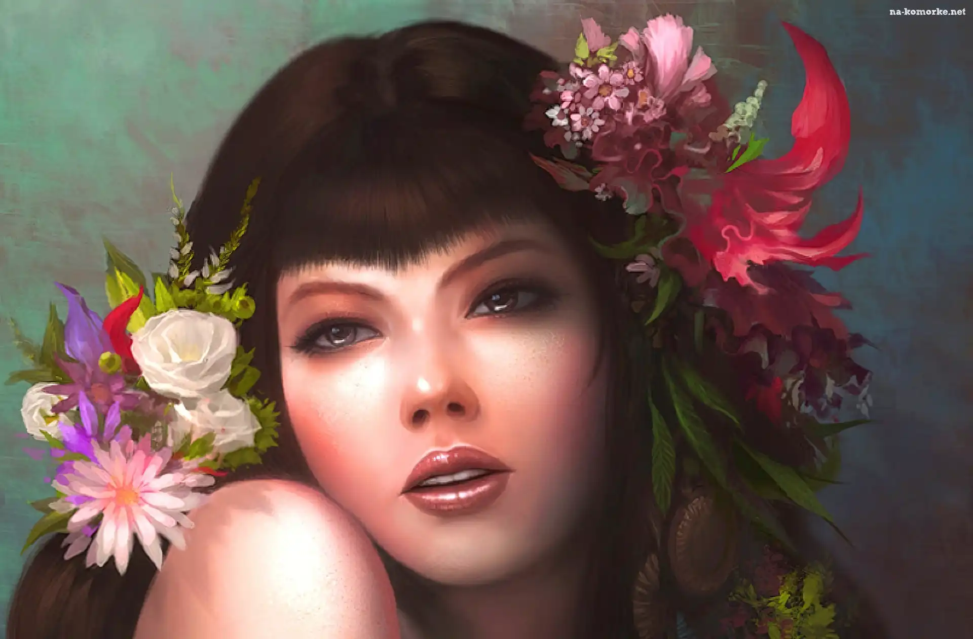 Kobieta, Oczy , Kwiatki, Piwne na Komórkę
