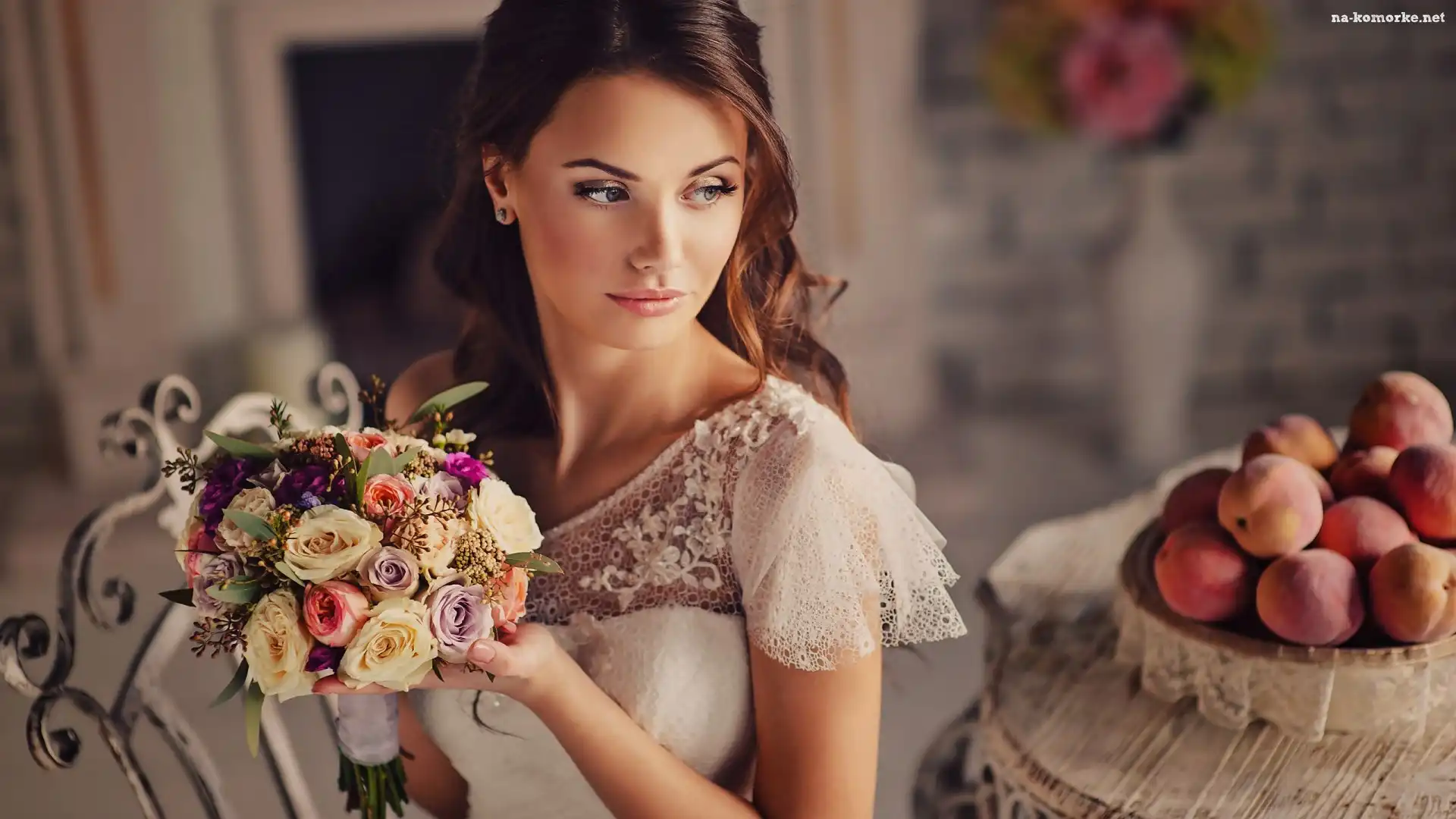 Kobieta, Vintage, Kwiaty, Bukiet na Komórkę