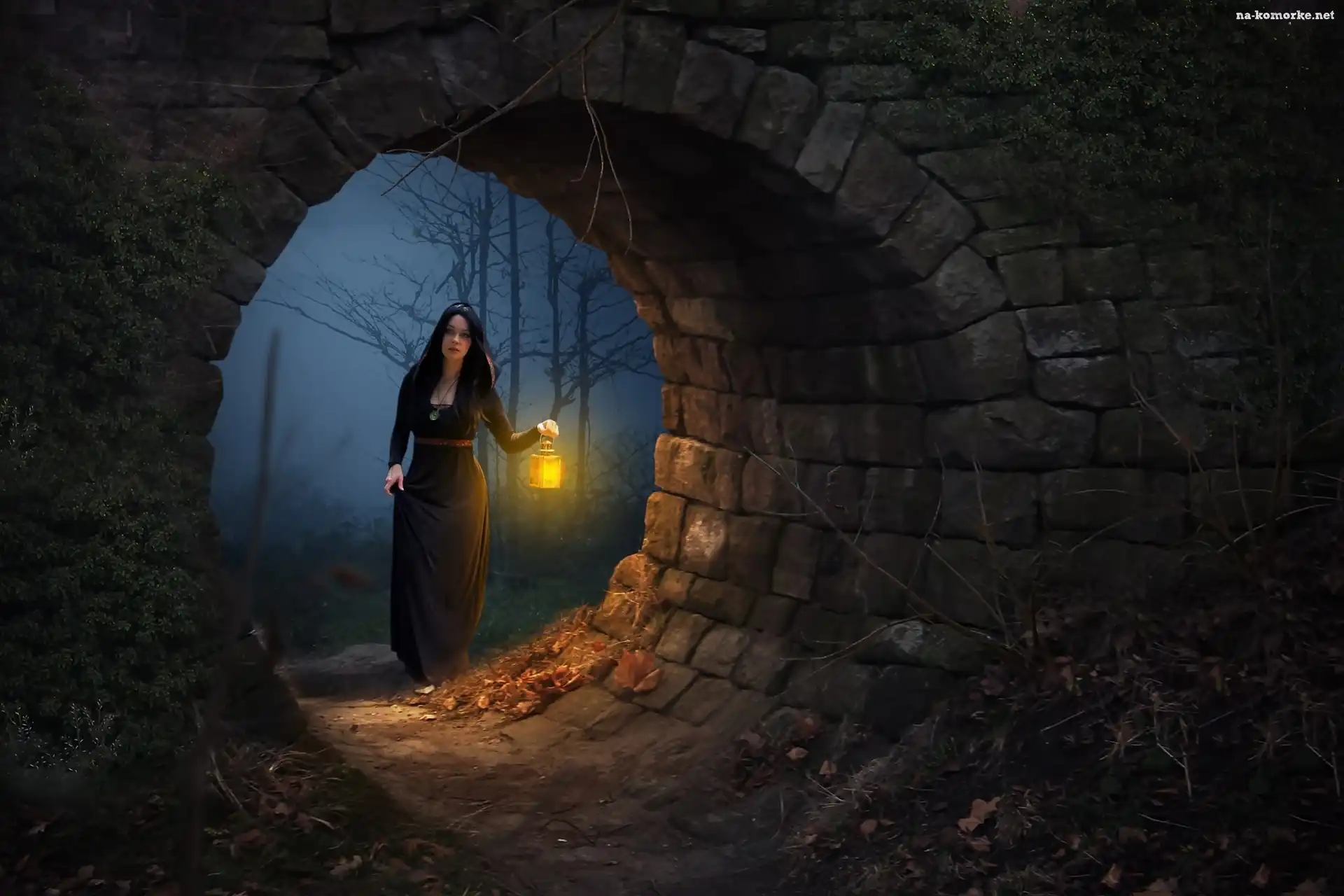 Kobieta, Noc, Lampion, Wiadukt na Komórkę