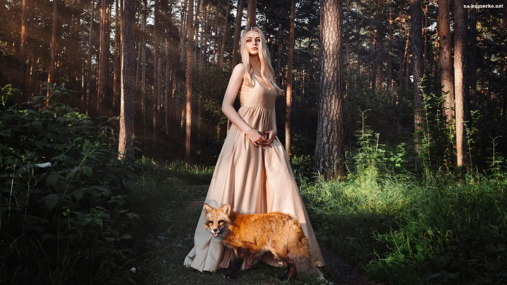 Kobieta, Drzewa, Las, Lis na Komórkę