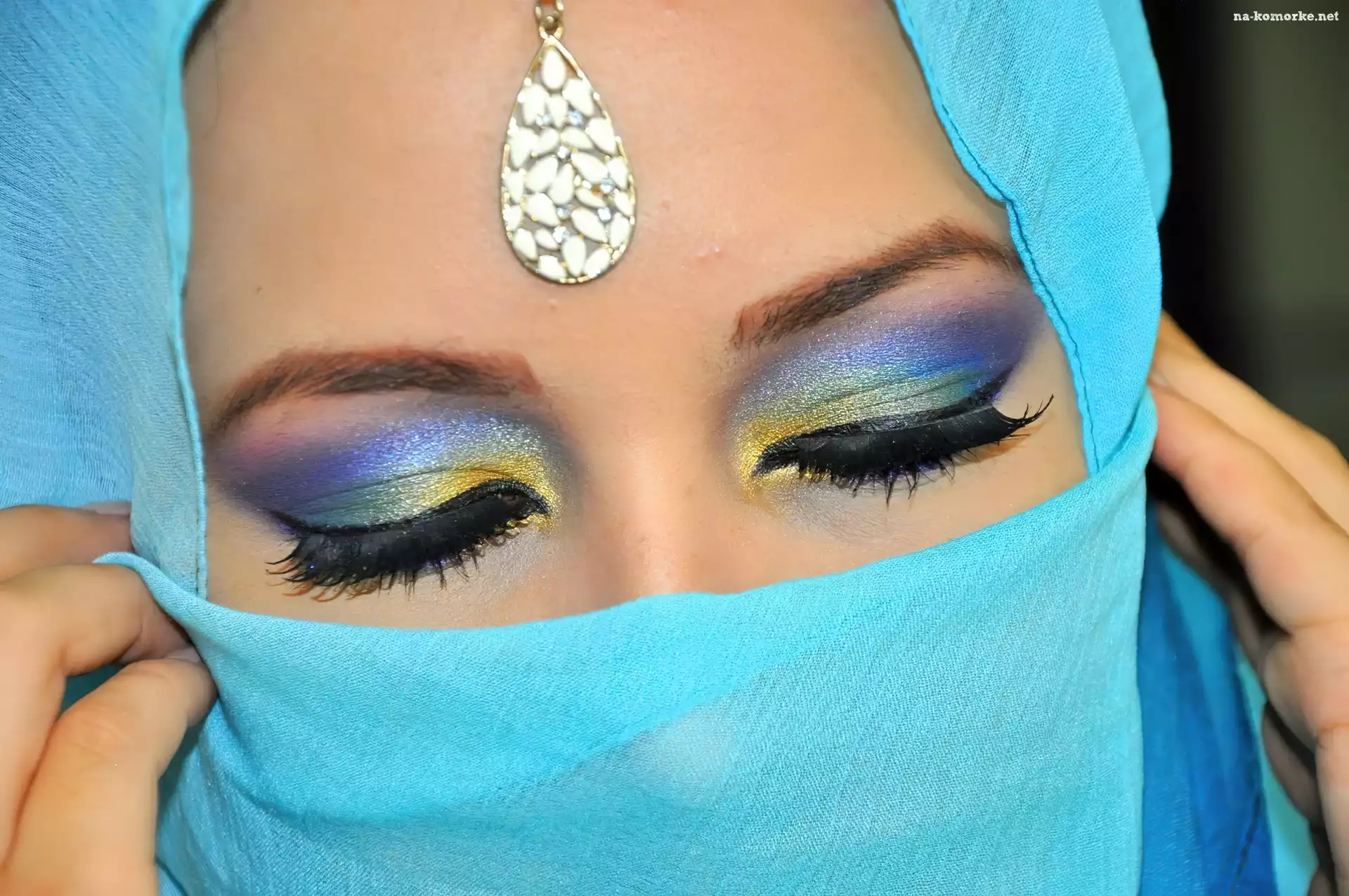 Kobieta, Chusta, Makijaż, Niebieska na Komórkę