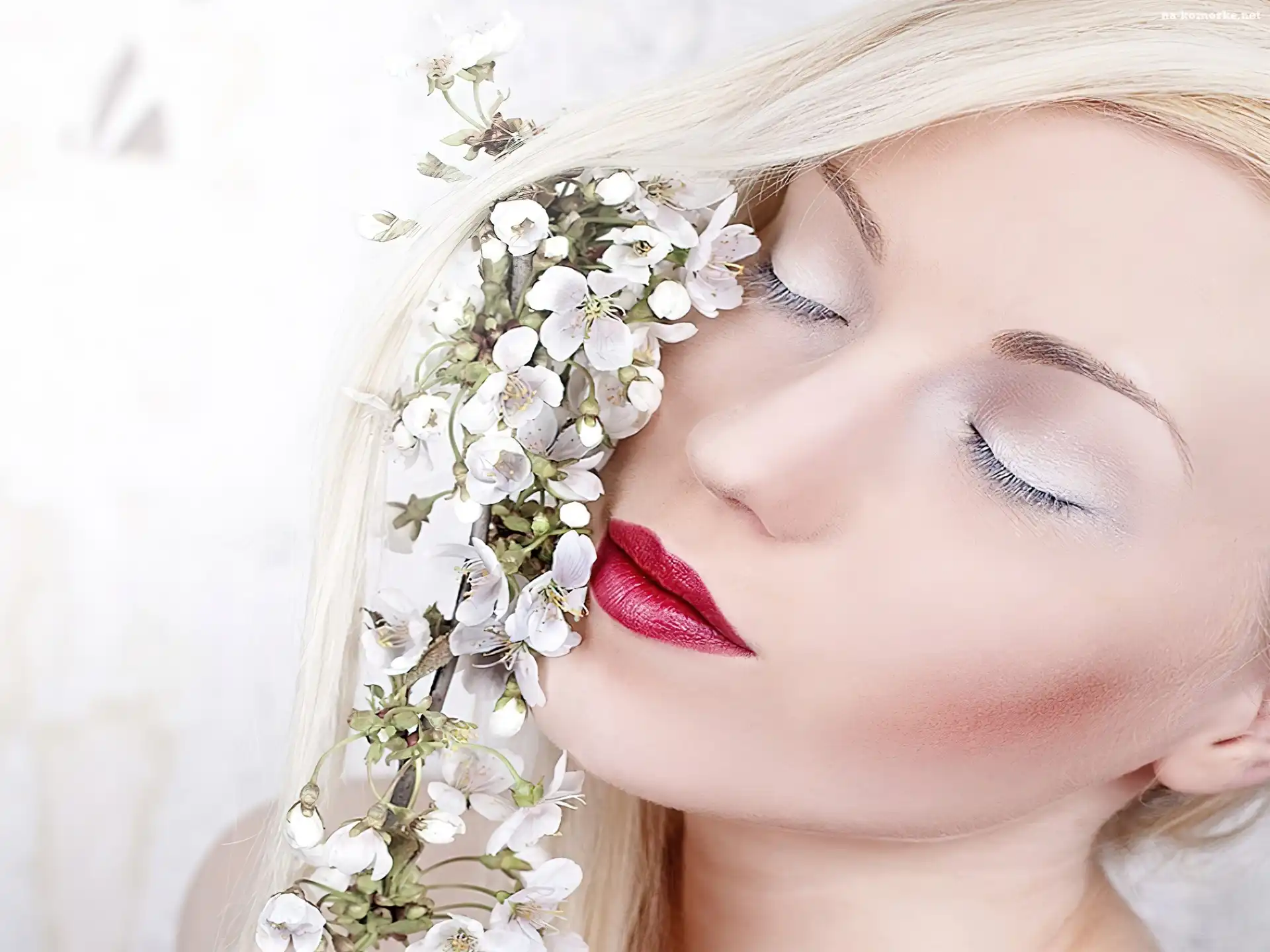 Kobieta, Czereśni, Makijaż, Kwiat na Komórkę