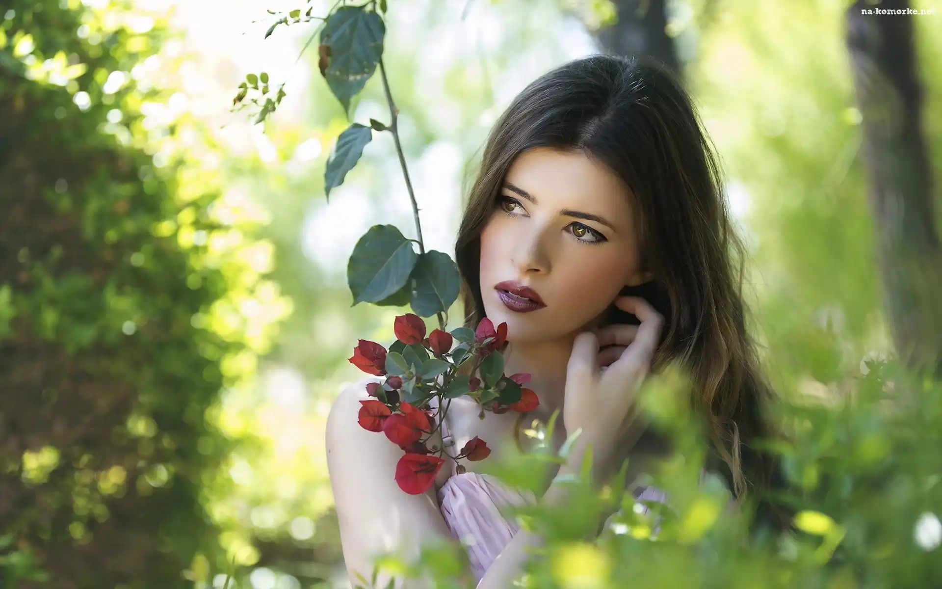 Kobieta, Gałązka, Makijaż, Kwitnąca na Komórkę