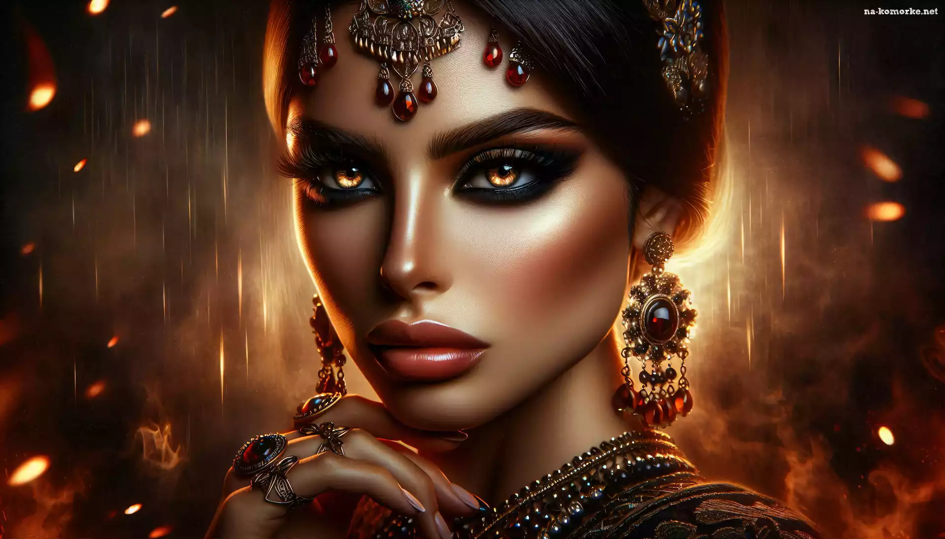 Makijaż, Biżuteria, Grafika, Kobieta na Komórkę