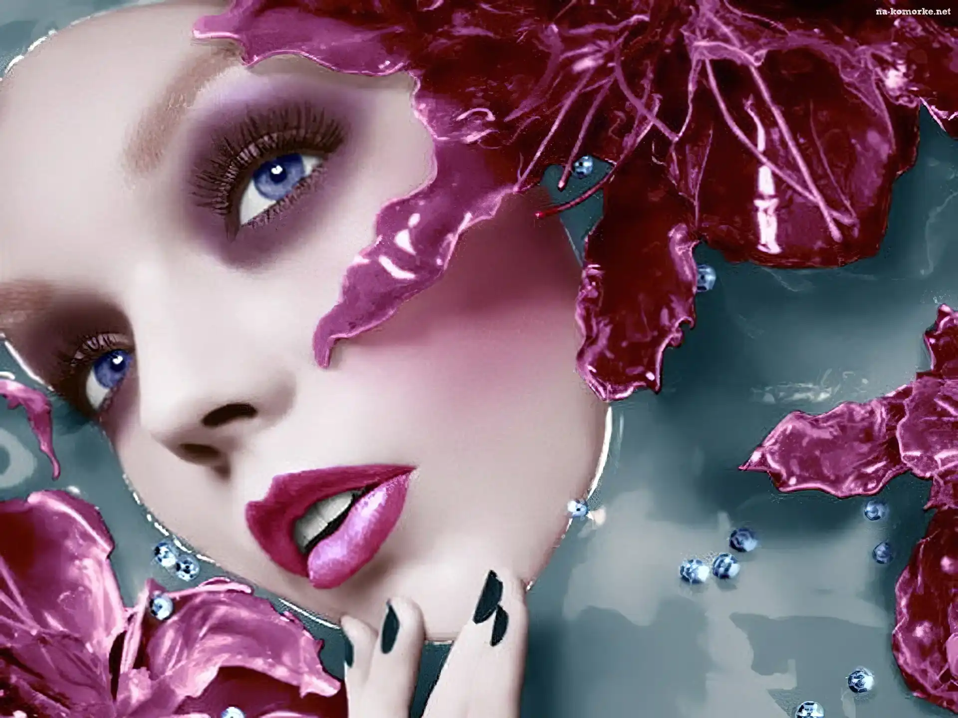 Kobieta, Palce, Makijaż, Kwiaty na Komórkę