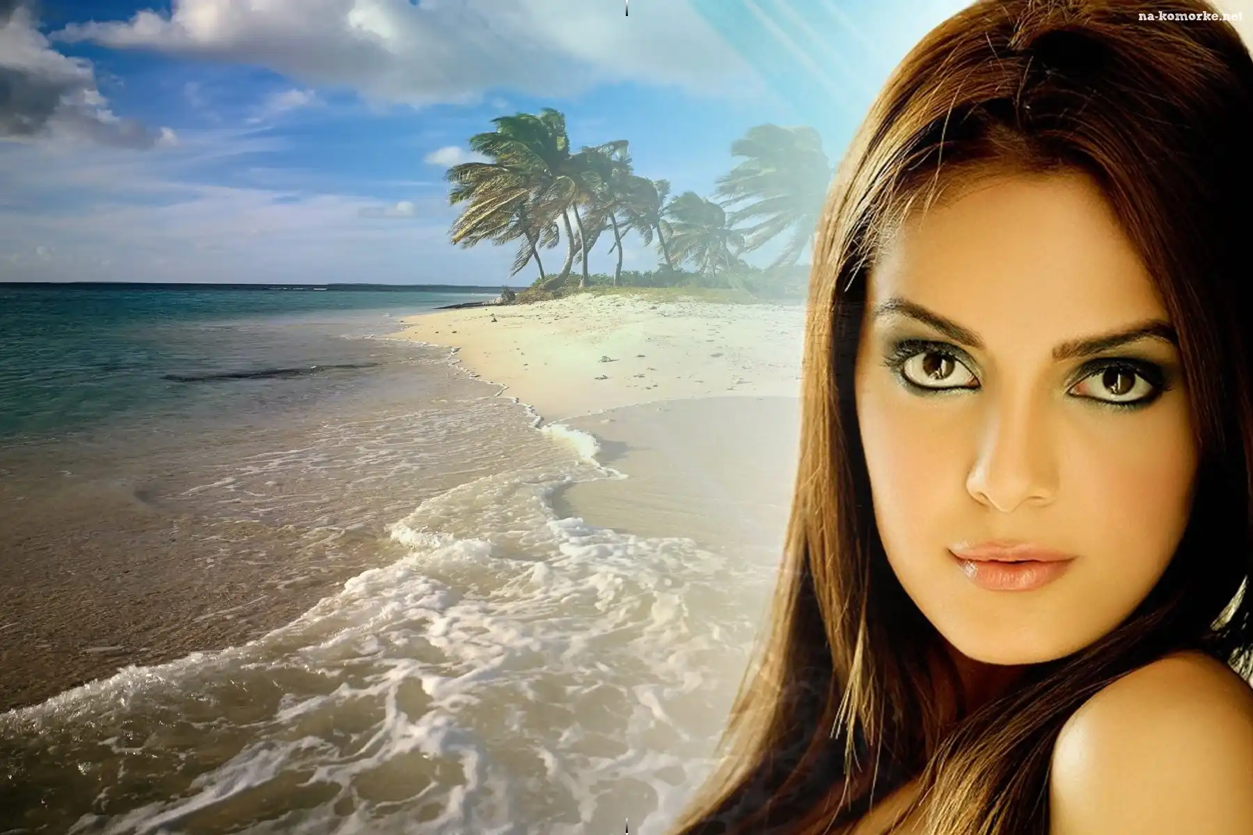 Kobieta, Palmy, Makijaż, Plaża na Komórkę
