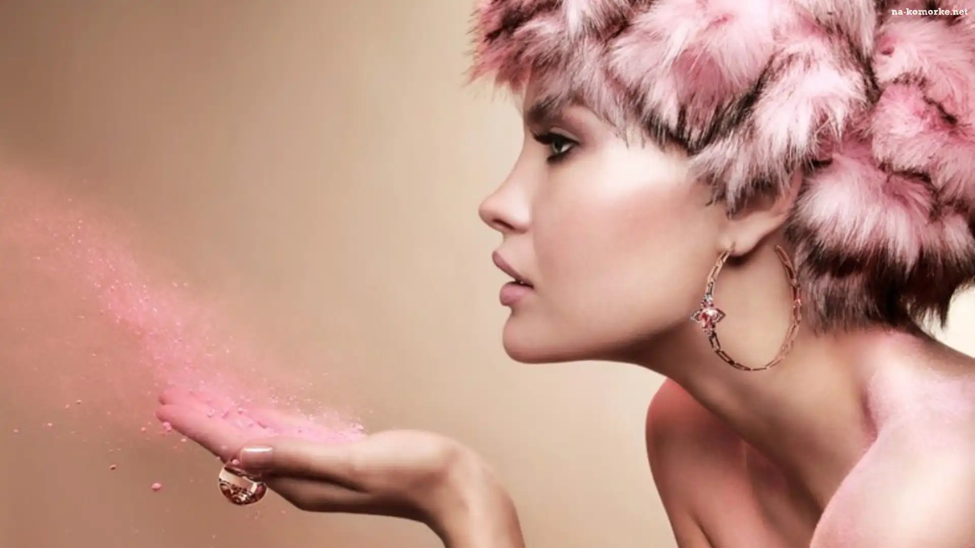 Kobieta, Róż, Makijaż, Kolczyk na Komórkę