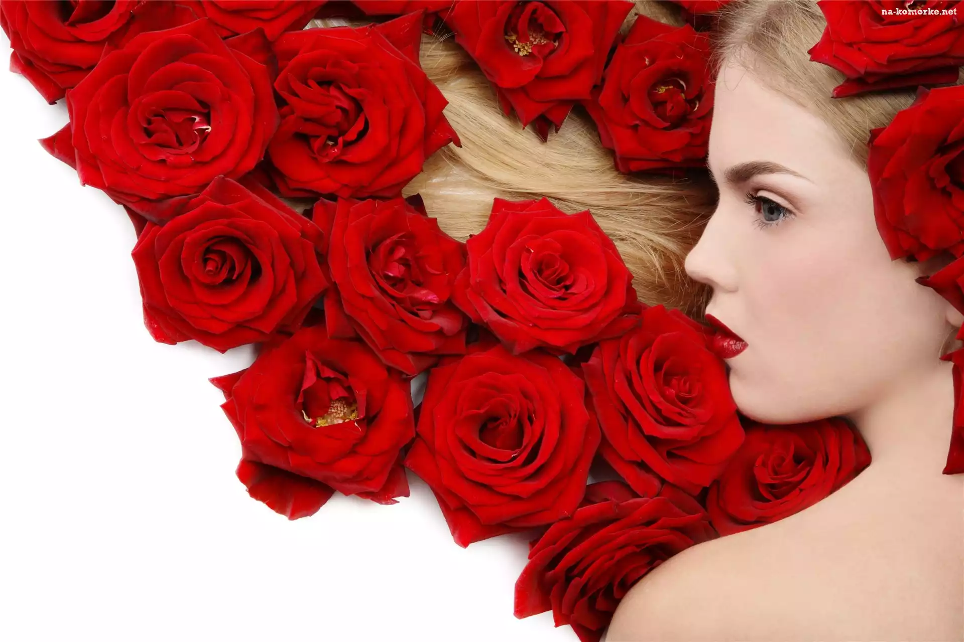 Kobieta, Róże, Makijaż, Czerwone na Komórkę
