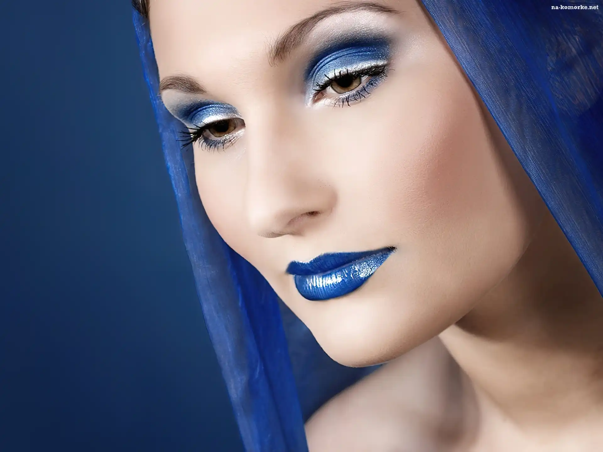 Kobieta, Usta, Makijaż, Niebieskie na Komórkę