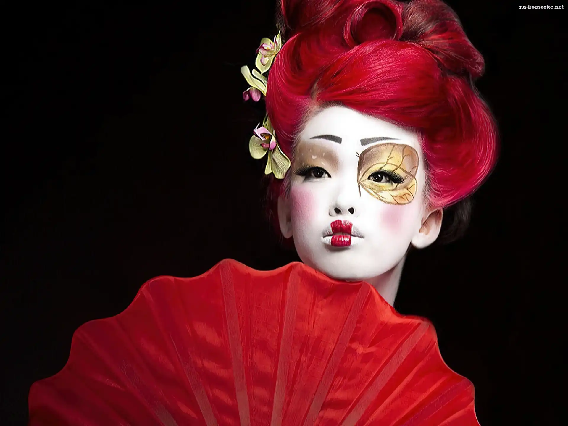 Kobieta, Wachlarz, Makijaż, Kwiaty na Komórkę
