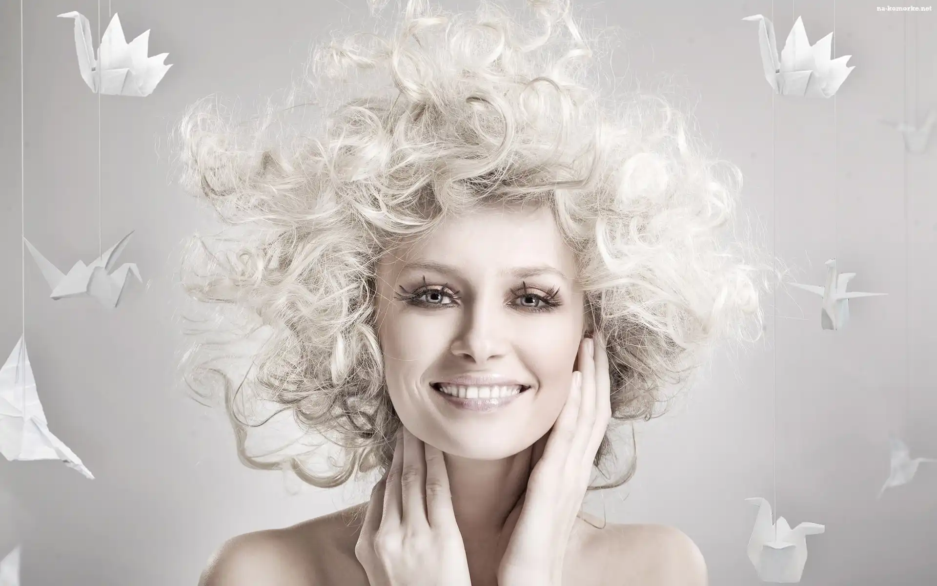 Kobieta, Włosy, Makijaż, Białe na Komórkę