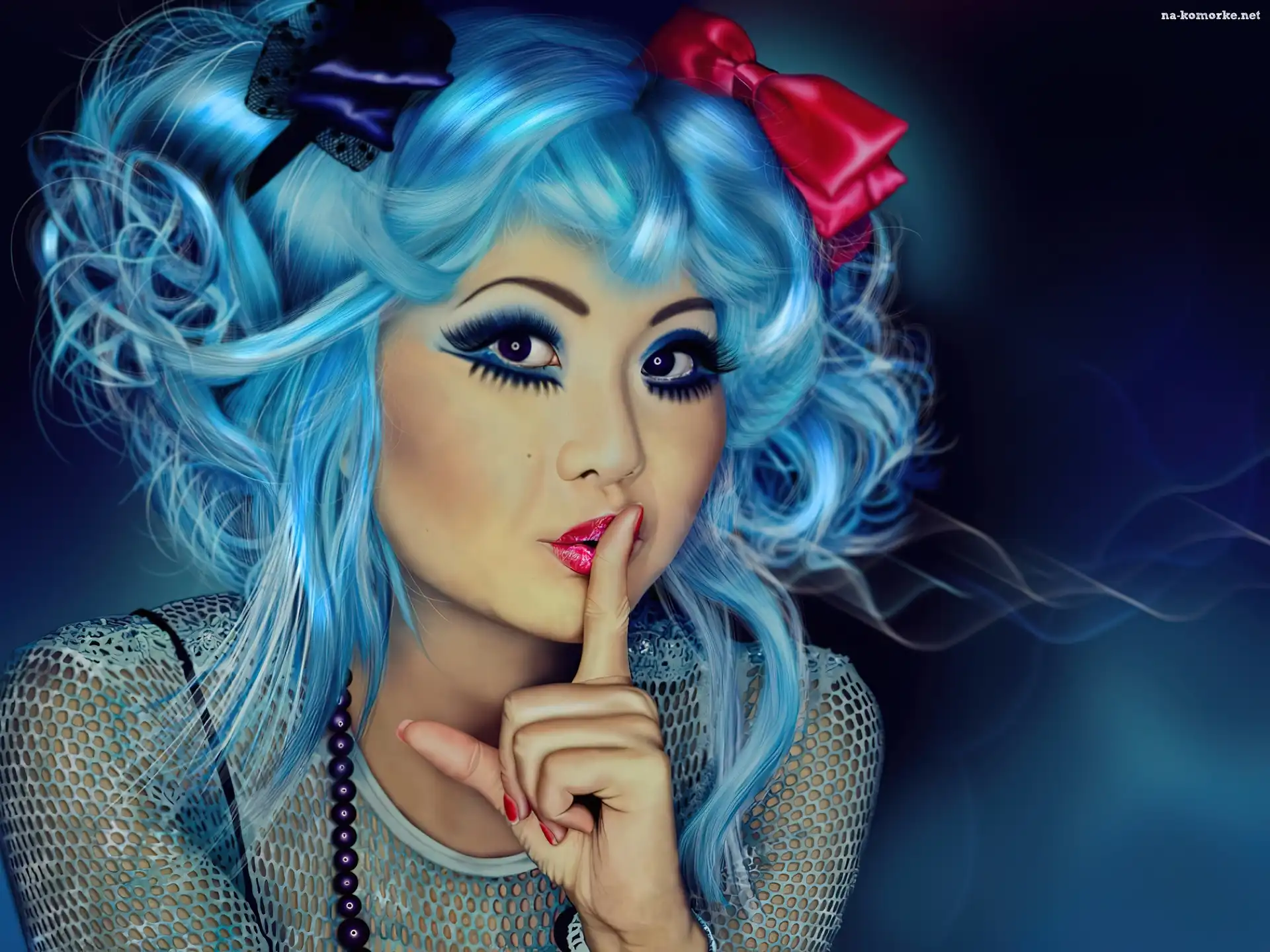 Kobieta, Włosy, Makijaż, Niebieskie na Komórkę