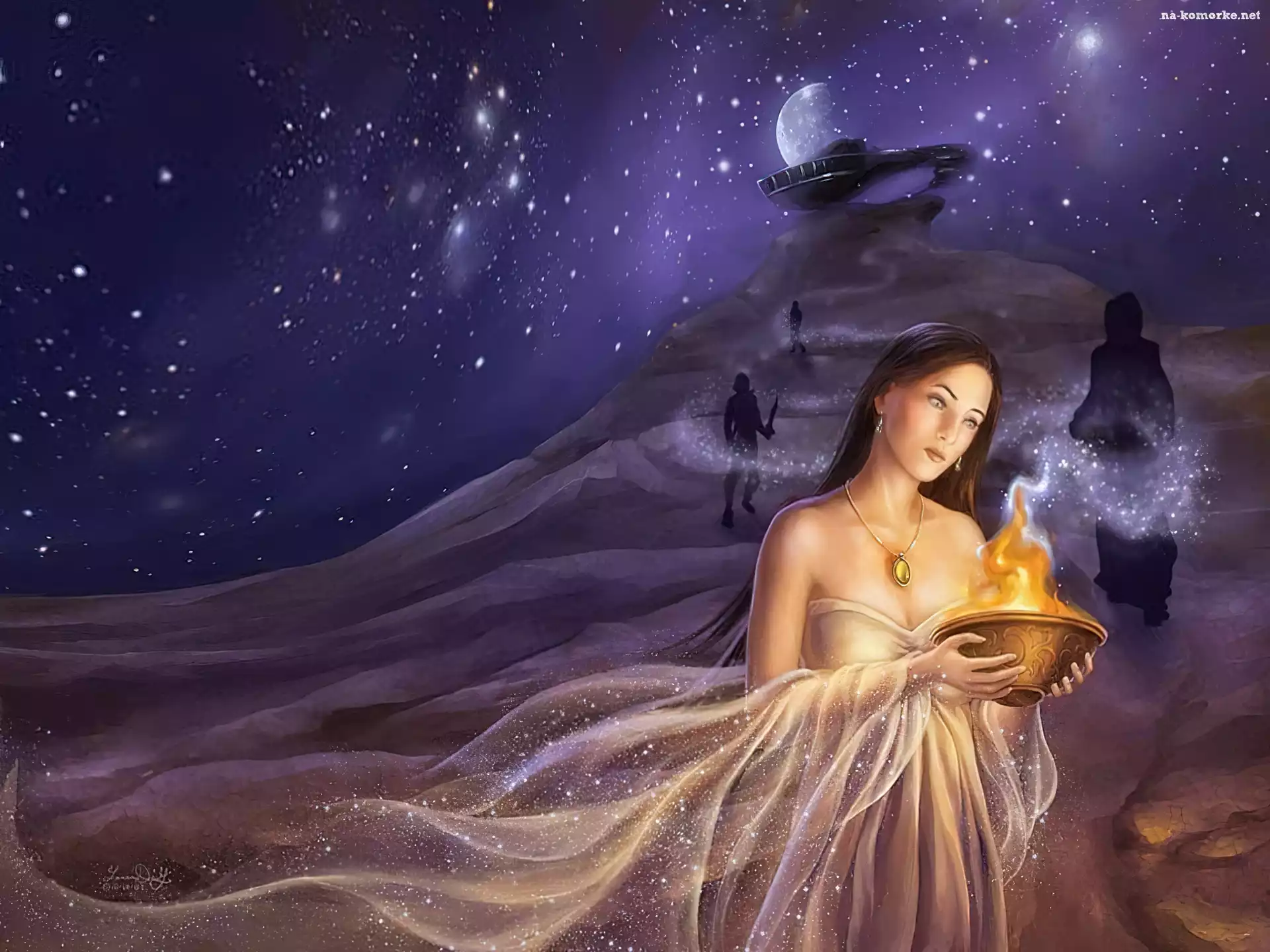 Kobieta, Noc, Medalion, Płomień na Komórkę
