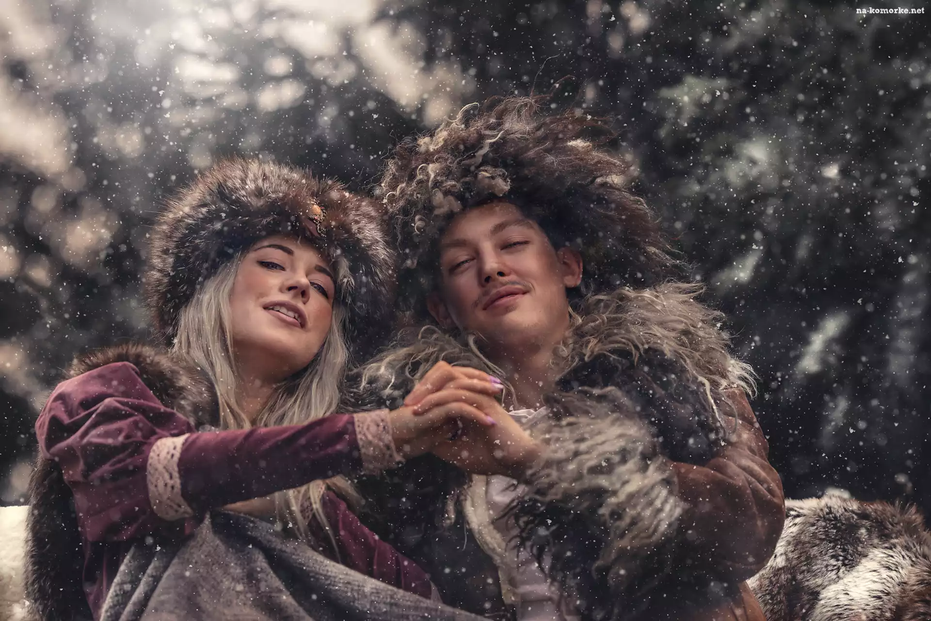 Kobieta, Śnieg, Mężczyzna, Czapki na Komórkę