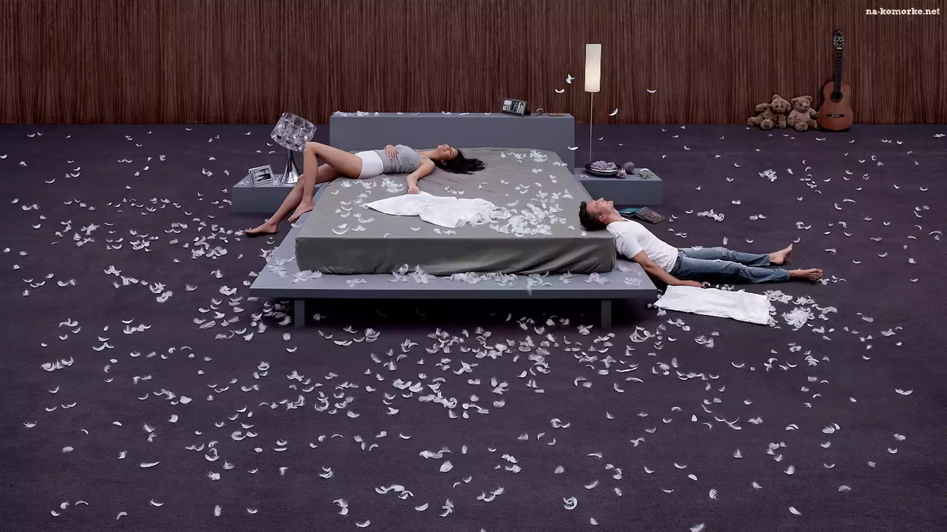 Kobieta, Piórka, Mężczyzna, Łóżko na Komórkę