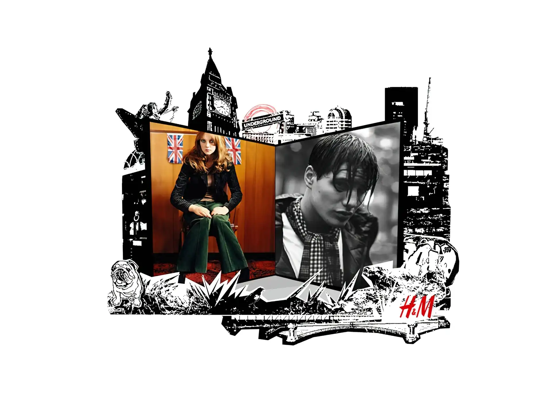 H And M, kobieta, mężczyzna spodnie, kobieta, H And M, szalik, marynarka, mężczyzna