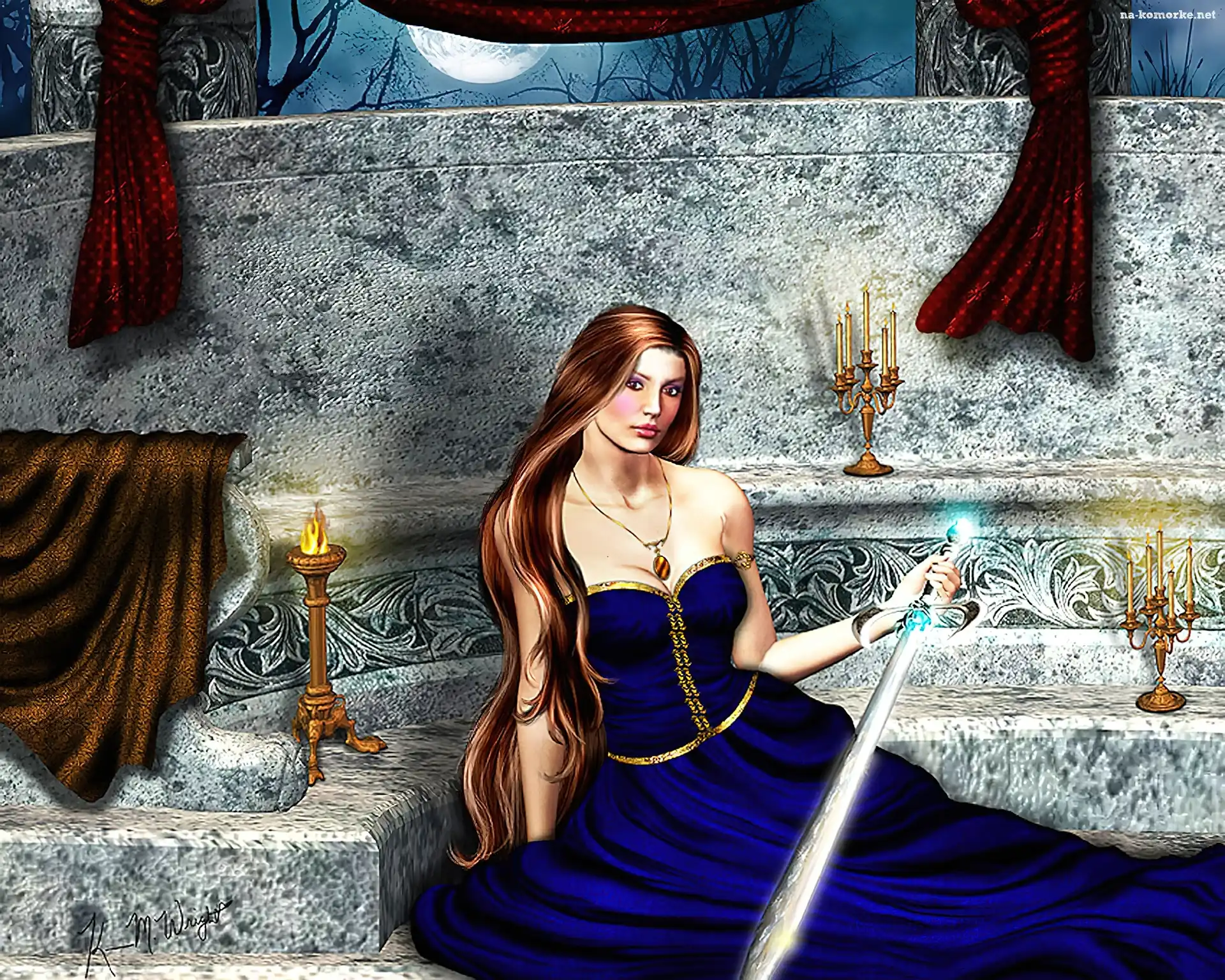 Kobieta, Księżyc, Miecz, Świeczniki na Komórkę