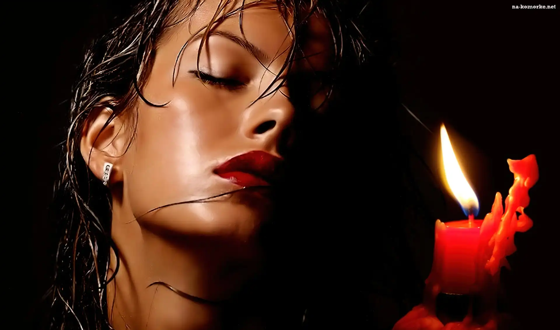 Kobieta, Świeca, Mokre, Włosy na Komórkę
