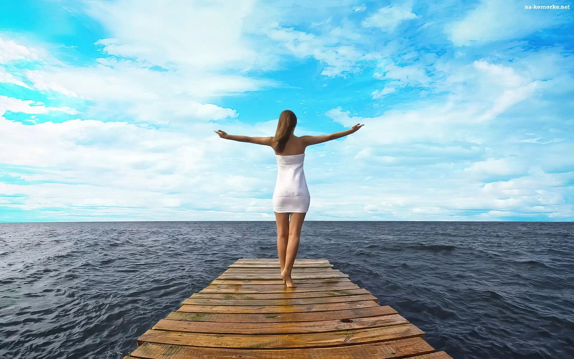 Kobieta, Molo, Morze, Niebo na Komórkę