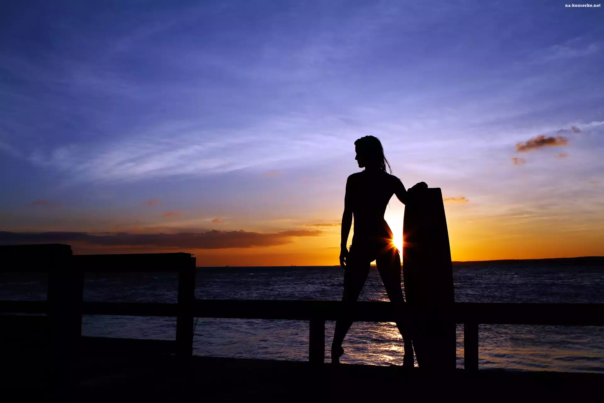 Kobieta, Słońca, Morze, Zachód na Komórkę
