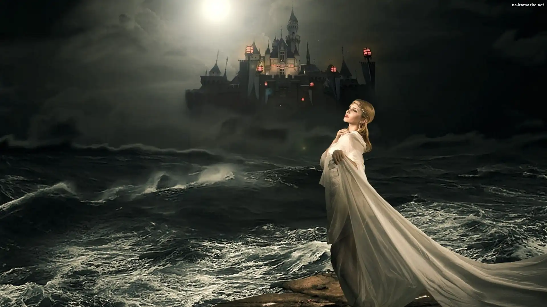 Kobieta, Zamek, Morze, Noc na Komórkę