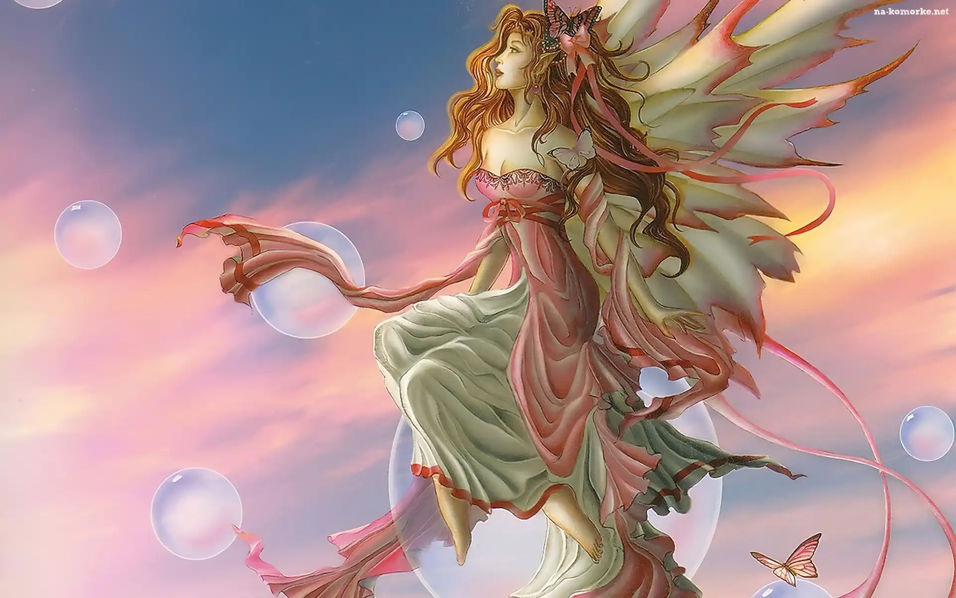 Kobieta, Bańki, Motyl, Wstążki na Komórkę