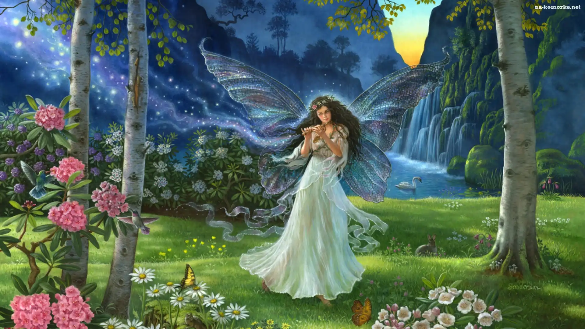 Elf, Wianek, Twarz Kobieta, Zagubione, Dusze Kobieta, Ptak, Zieleń Kobieta, Miecze, Wojownik Kagaya, Piękna, Syrena, Podwodny, Świat Final Fantasy, Advent Children Feniks Kolorowy, Koń, Blask Dobro, Kontra, Zło Zamek, Niebo, Chmury Kobieta, Anioł, Skrzydła Kobieta, Włosy, Fantasy, Ogniste Kobieta, Oczy, Kot, Fioletowe Młody, Smok