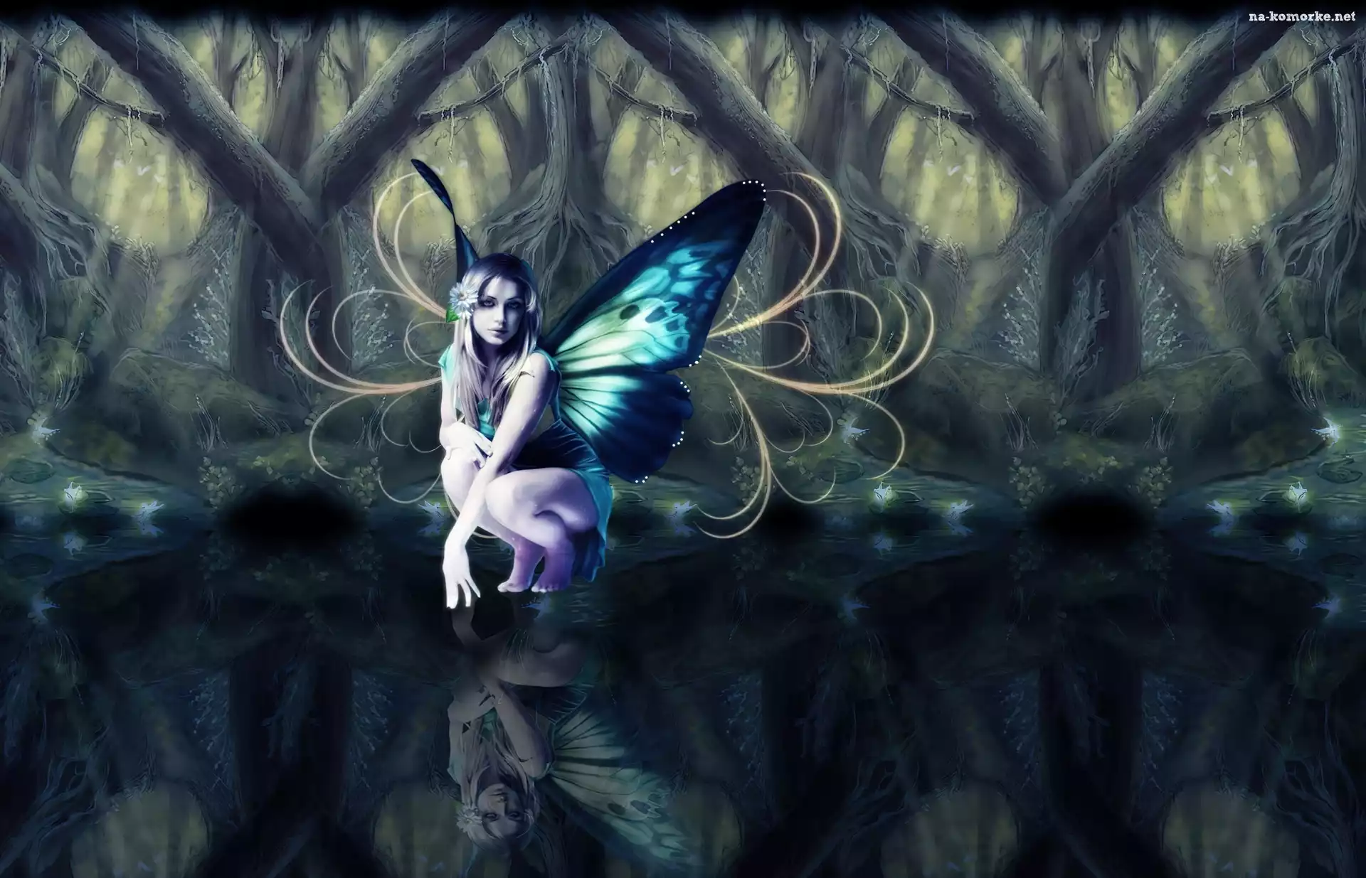 Kobieta, Woda, Motyl, Drzewa na Komórkę