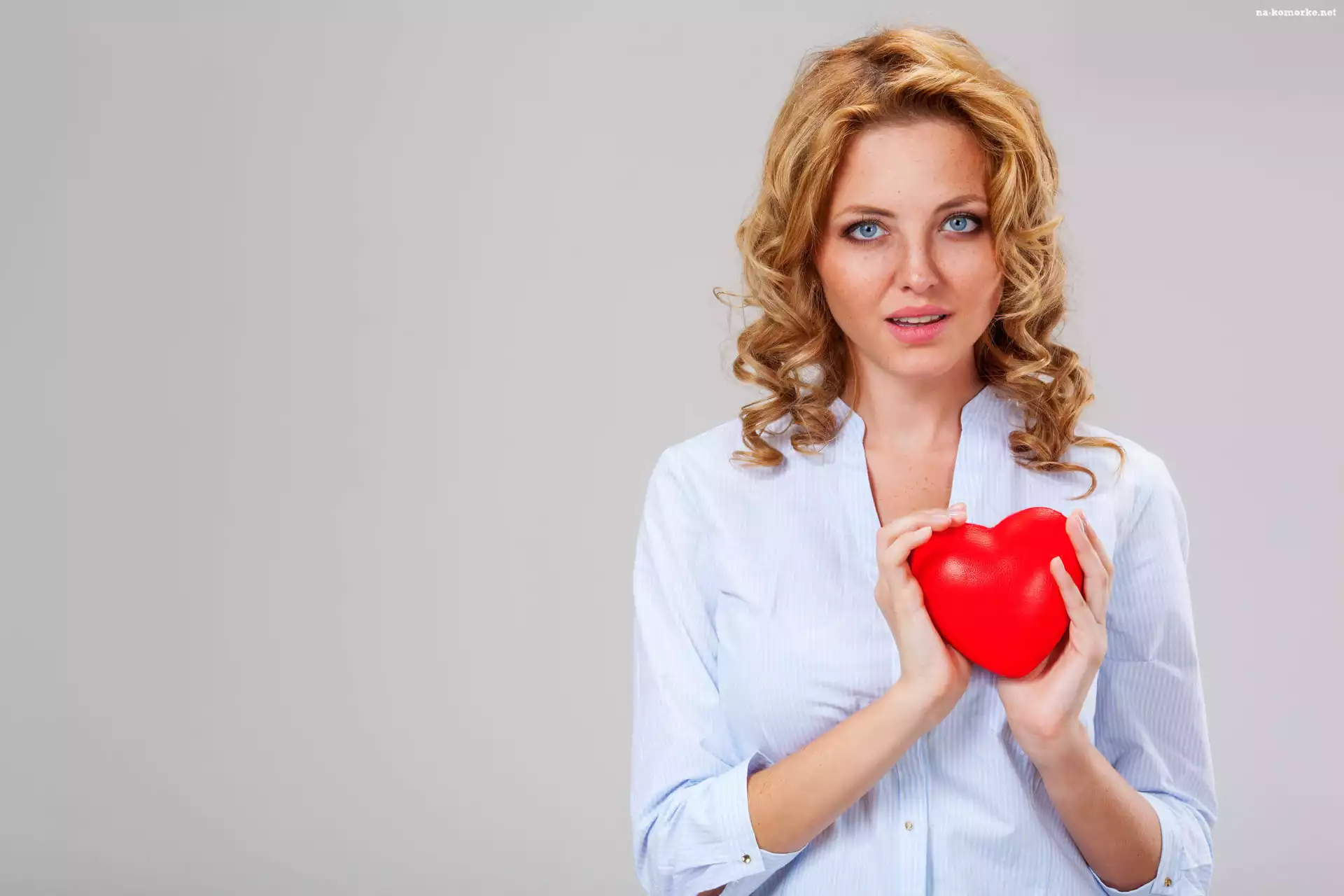 Kobieta, Serce, Niebieskooka, Blondynka na Komórkę