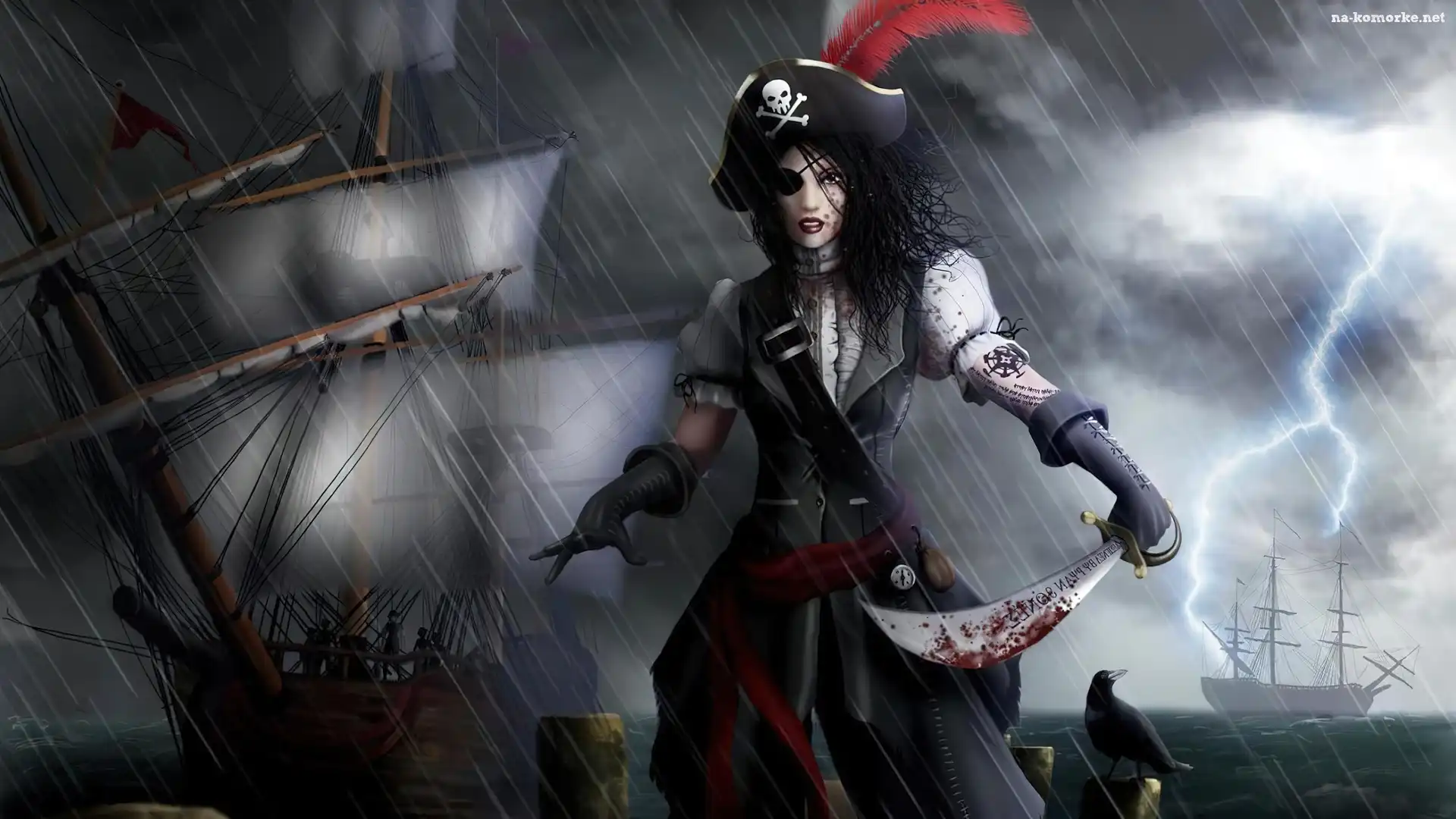 Miecz, Statek, Kobieta, Pirat na Komórkę