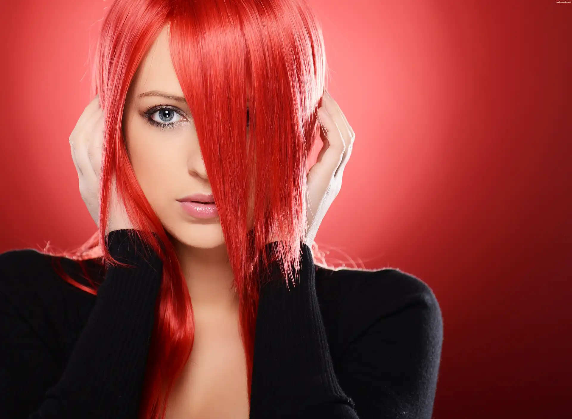 Kobieta, Farbowane włosy, Płomienna czerwień na Komórkę