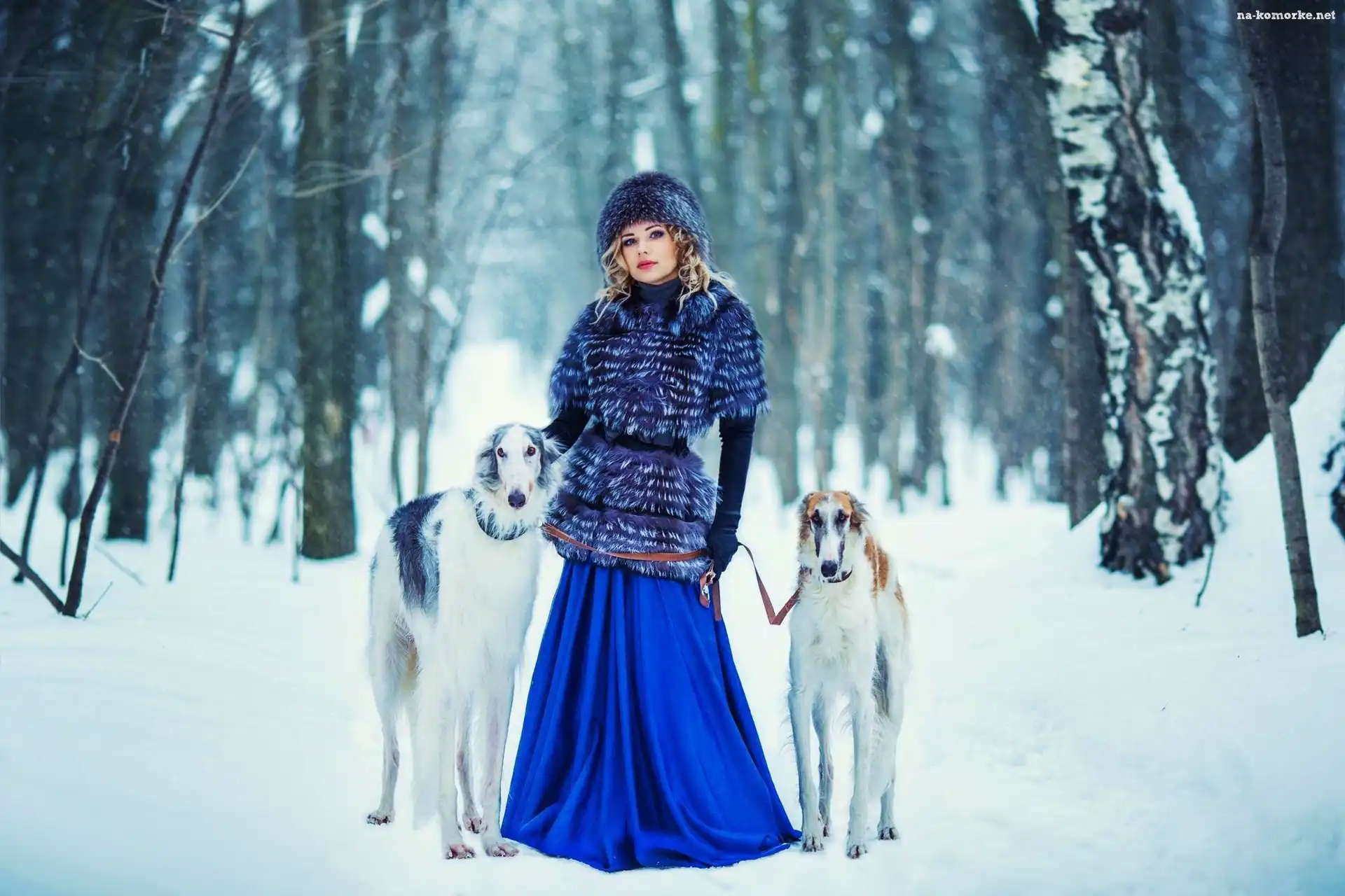 Kobieta, Śnieg, Psy, Las na Komórkę