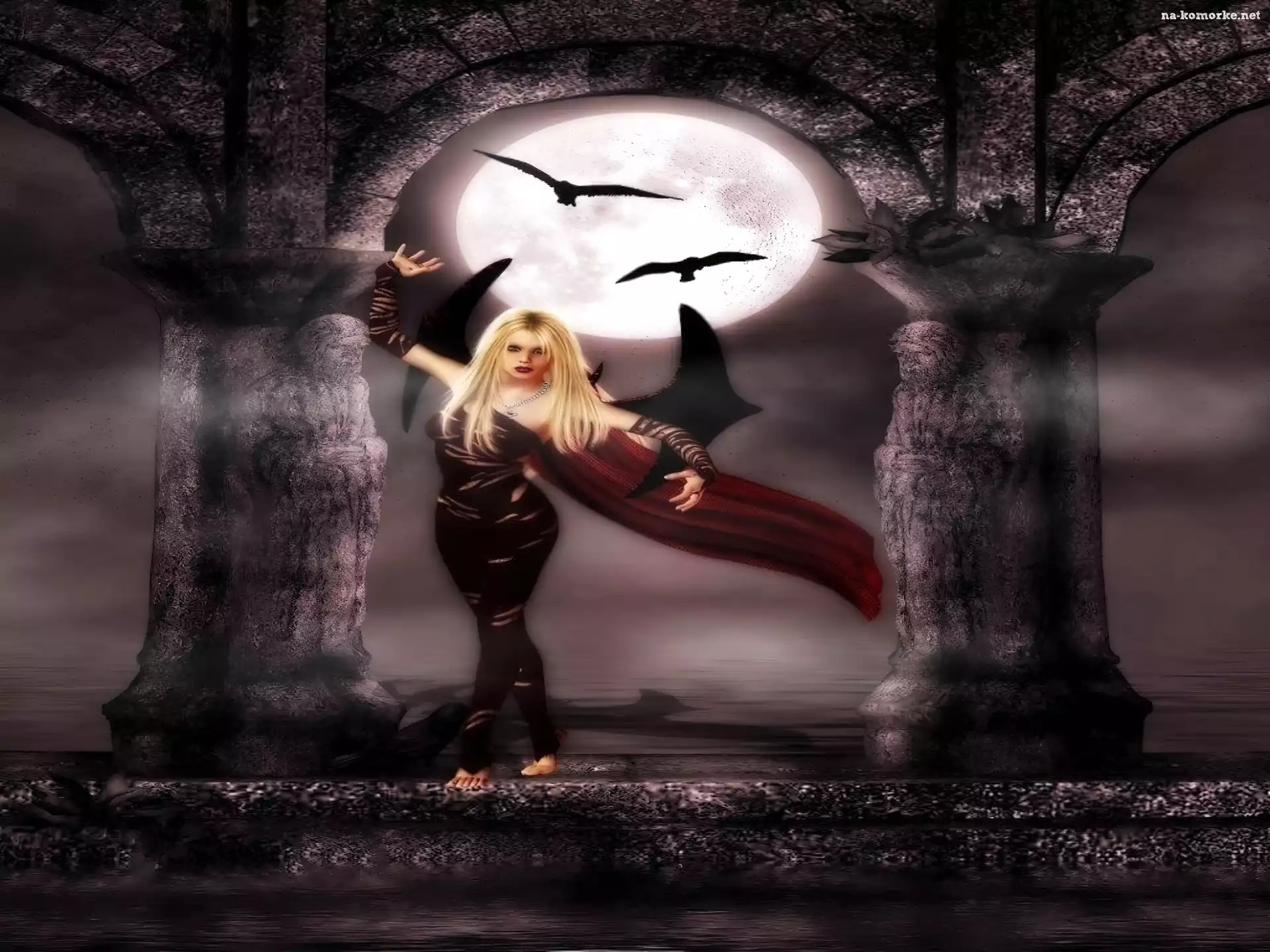 Kobieta, Księżyc, Ptaki, Skrzydła na Komórkę