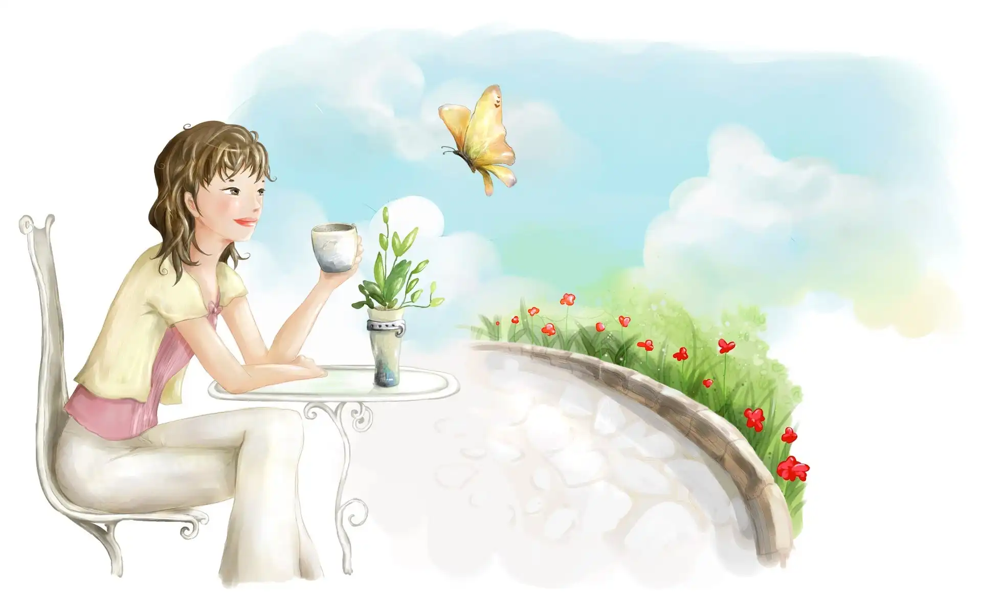 Kobieta, Kawa, Relaks, Taras na Komórkę