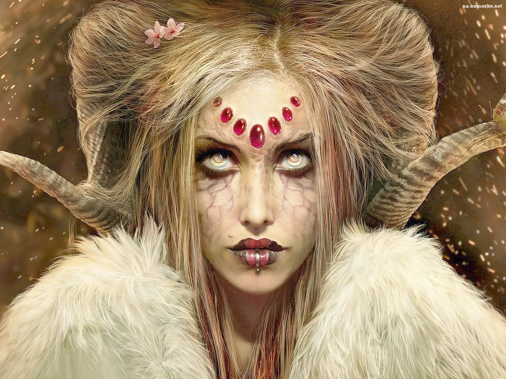 Kobieta, Kolczyk, Rogi, Rubiny na Komórkę