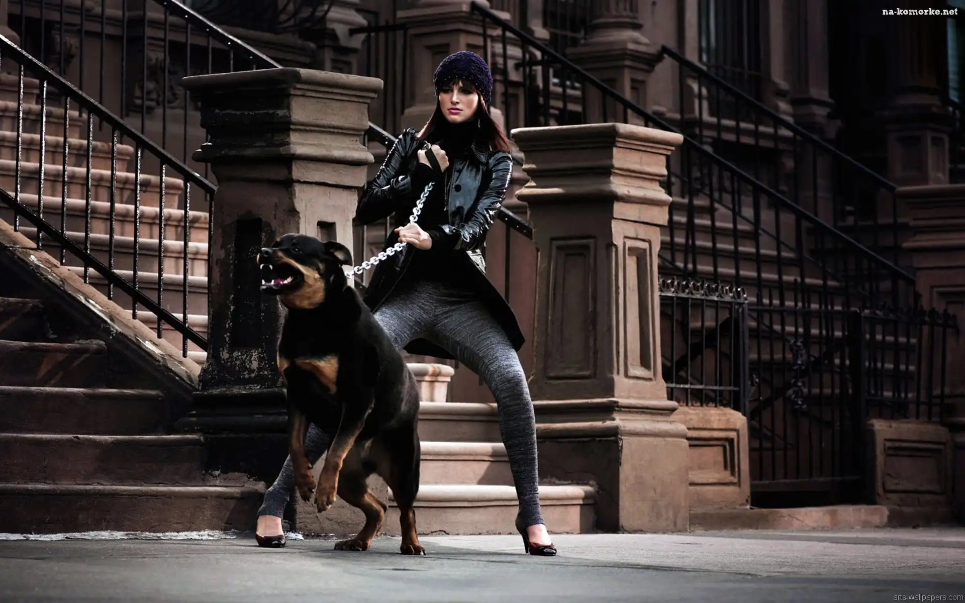 Kobieta, Rottweiler na Komórkę