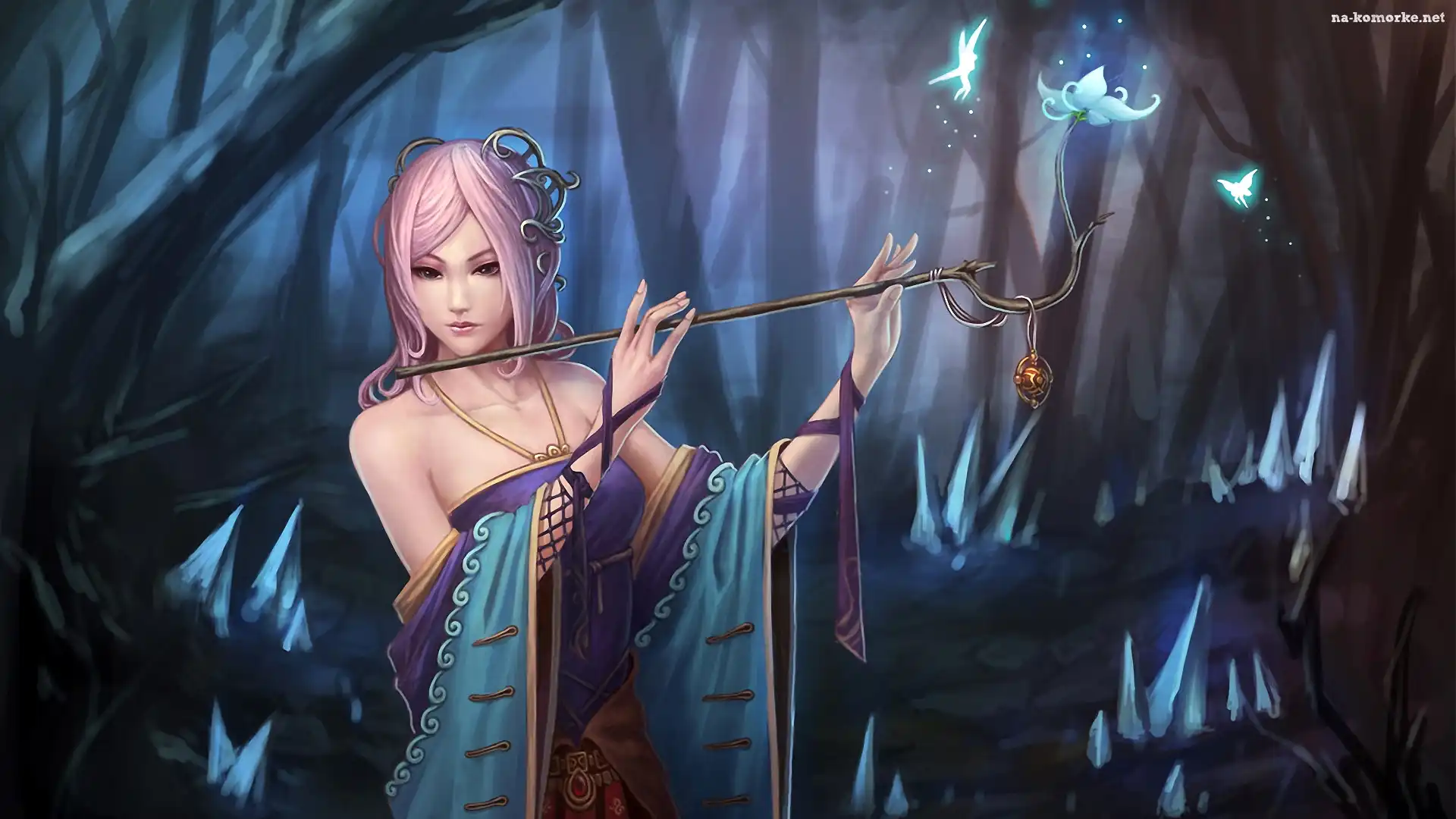 Kobieta, Las, Różdżka, Kwiaty na Komórkę