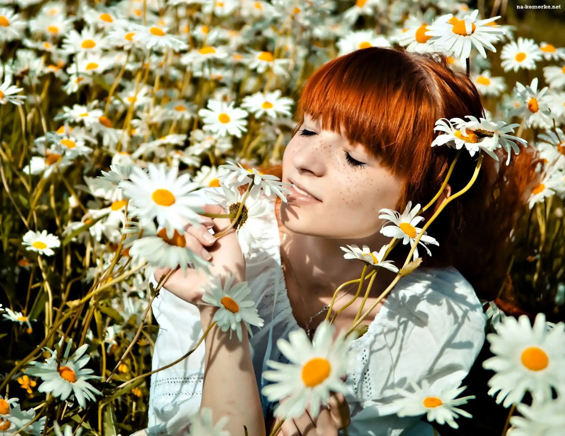 Kobieta, Margerytki, Rude, Włosy na Komórkę