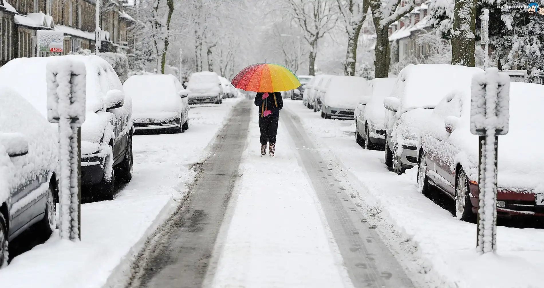Kobieta, Ulica, Zima, Parasolka, Samochody, Kolorowa na Komórkę