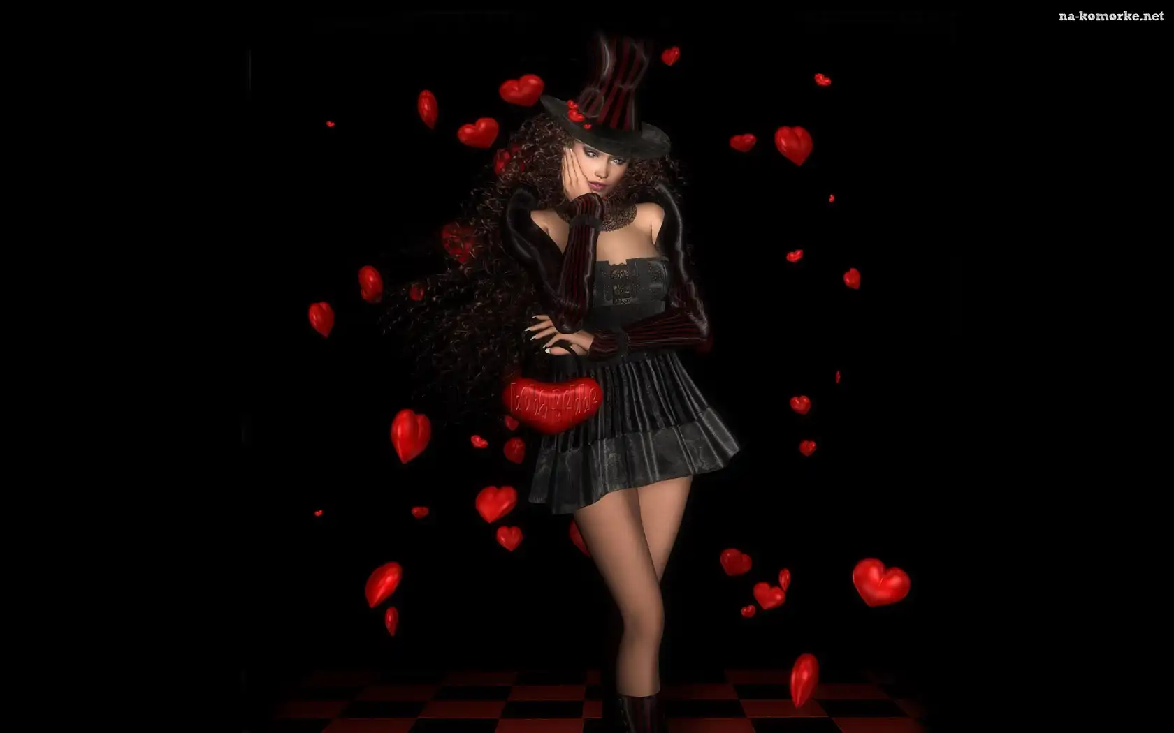 Kobieta, Tło, Serca, Czarne na Komórkę